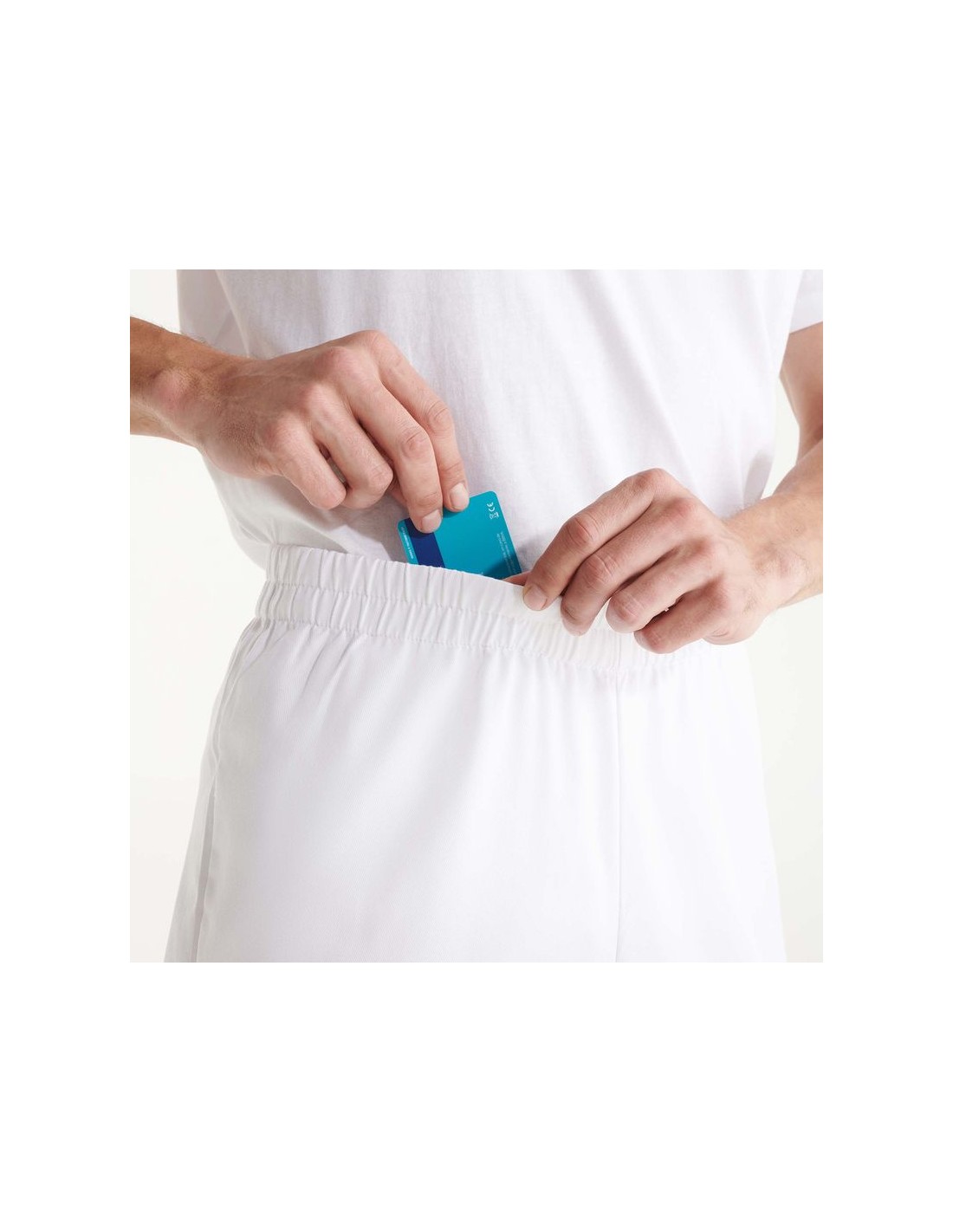 Pantaloni lunghi unisex a taglio dritto. - Girovita elastico. - Tasca interna con chiusura a velcro.