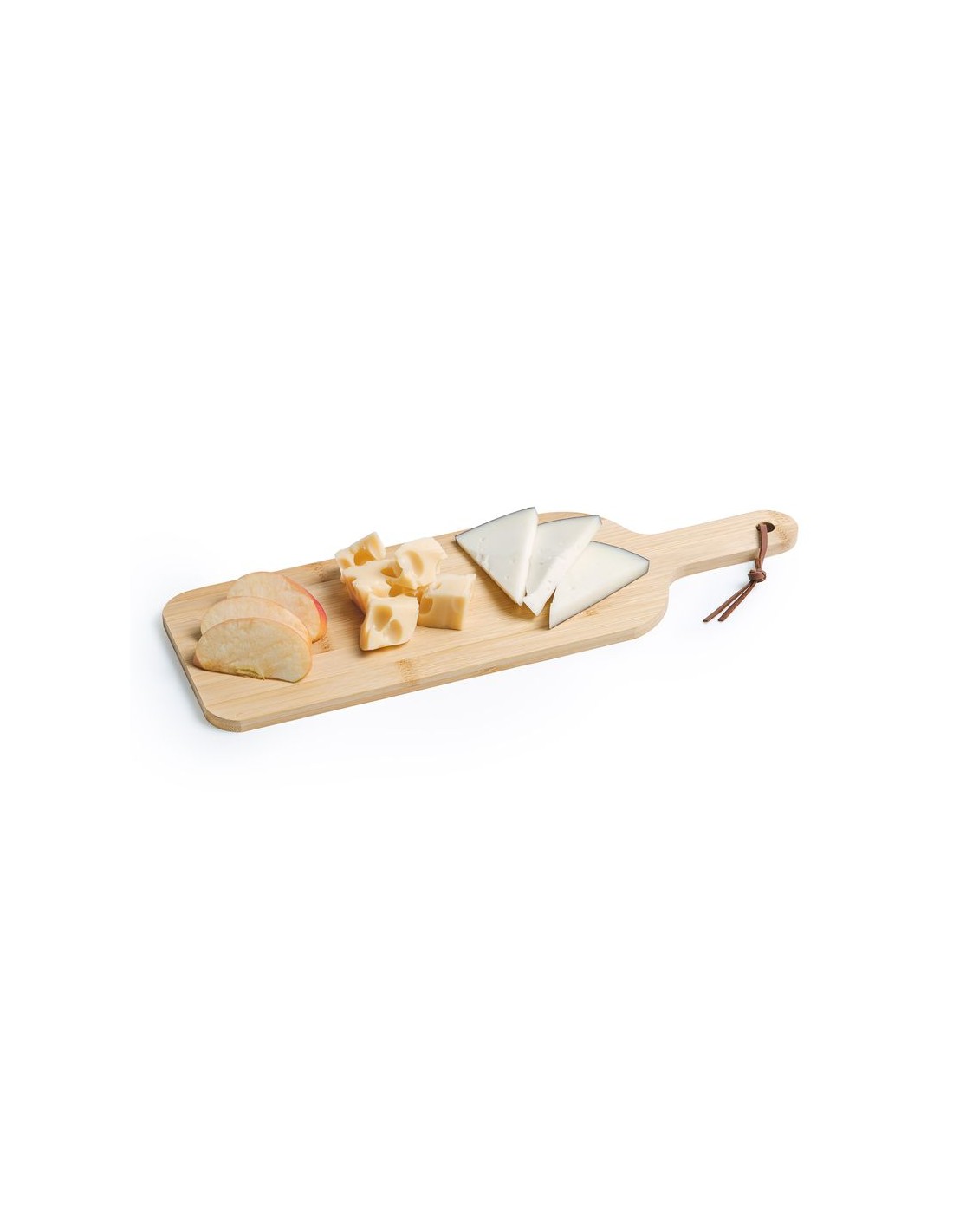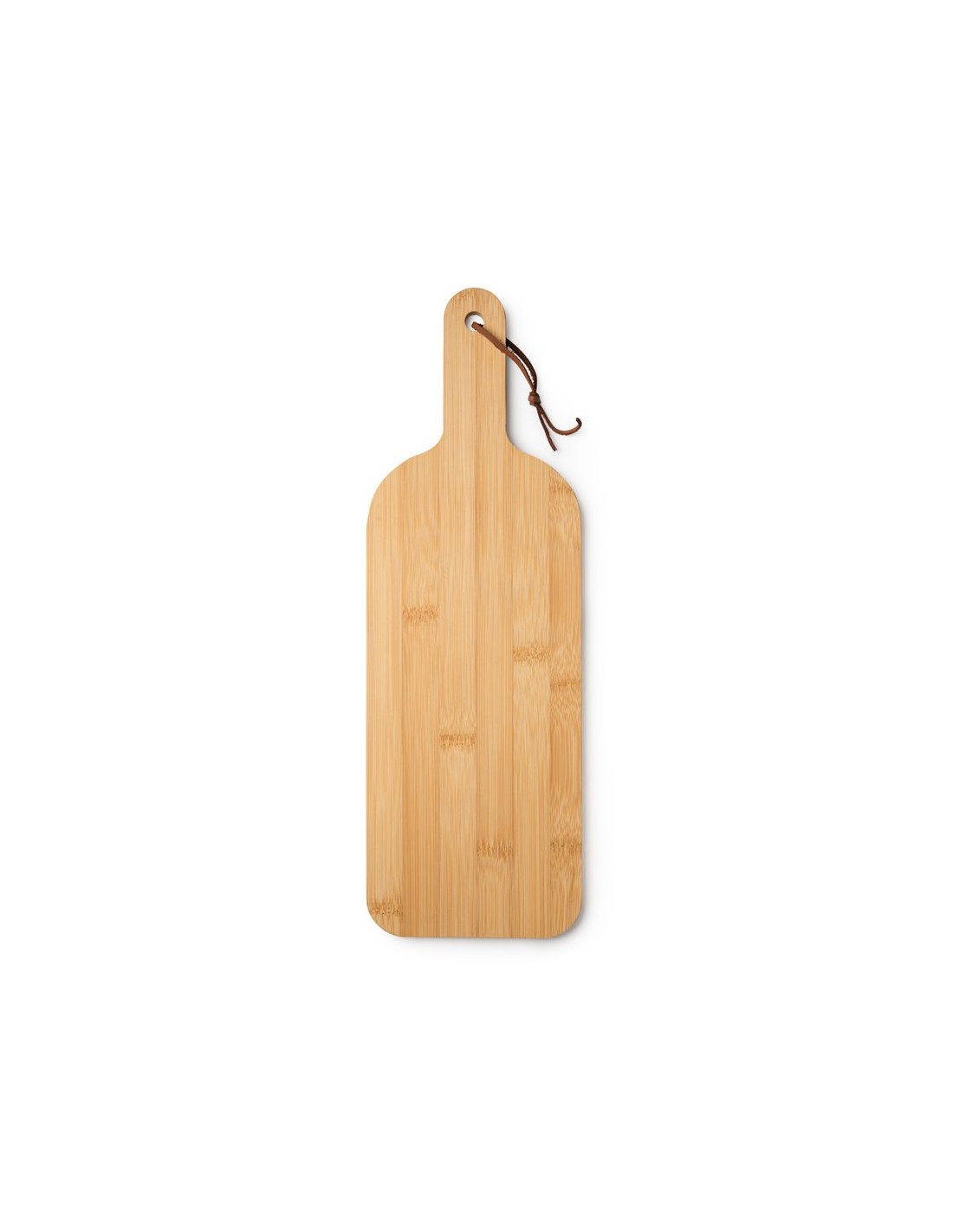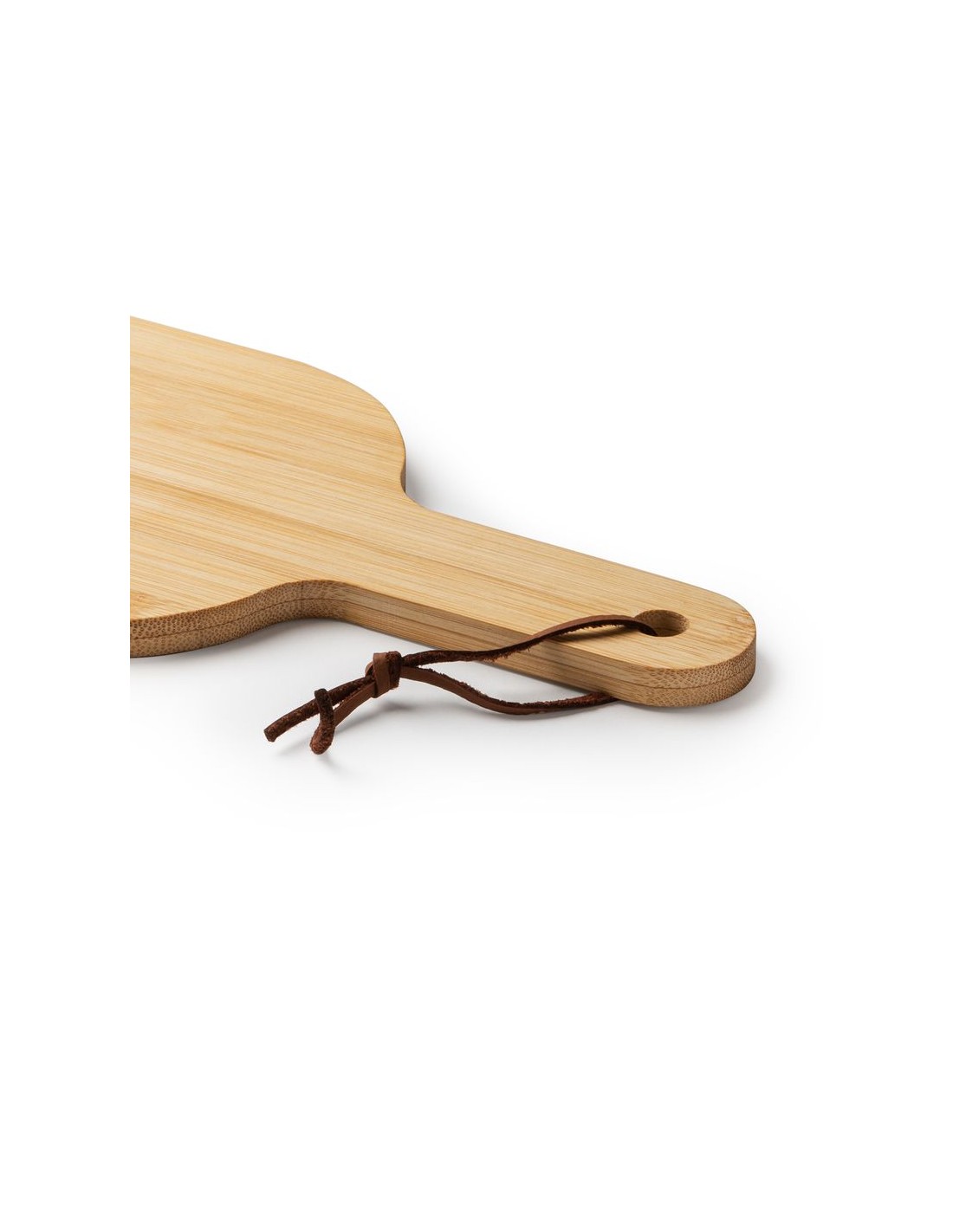 Tagliere in legno con manico per una facile manipolazione e cavo per appendere, perfetto per l'uso quotidiano.