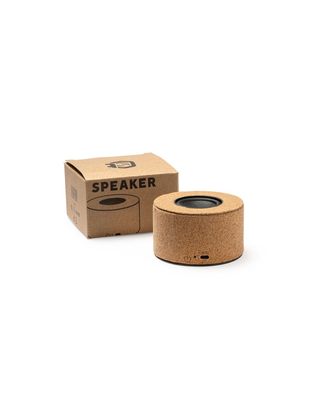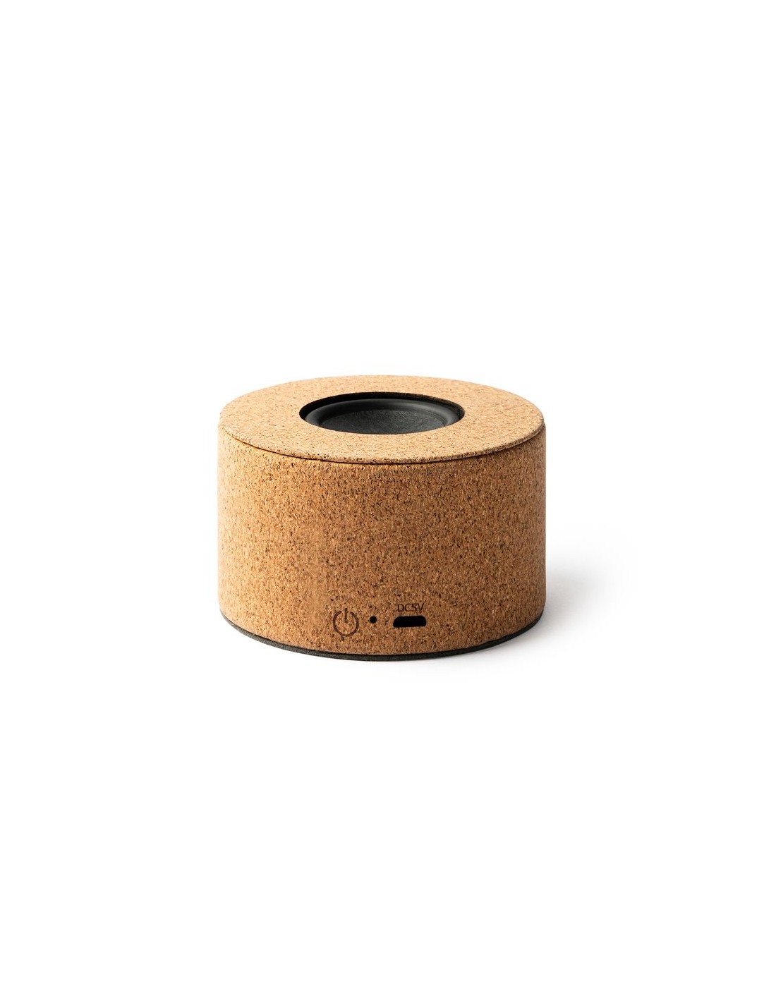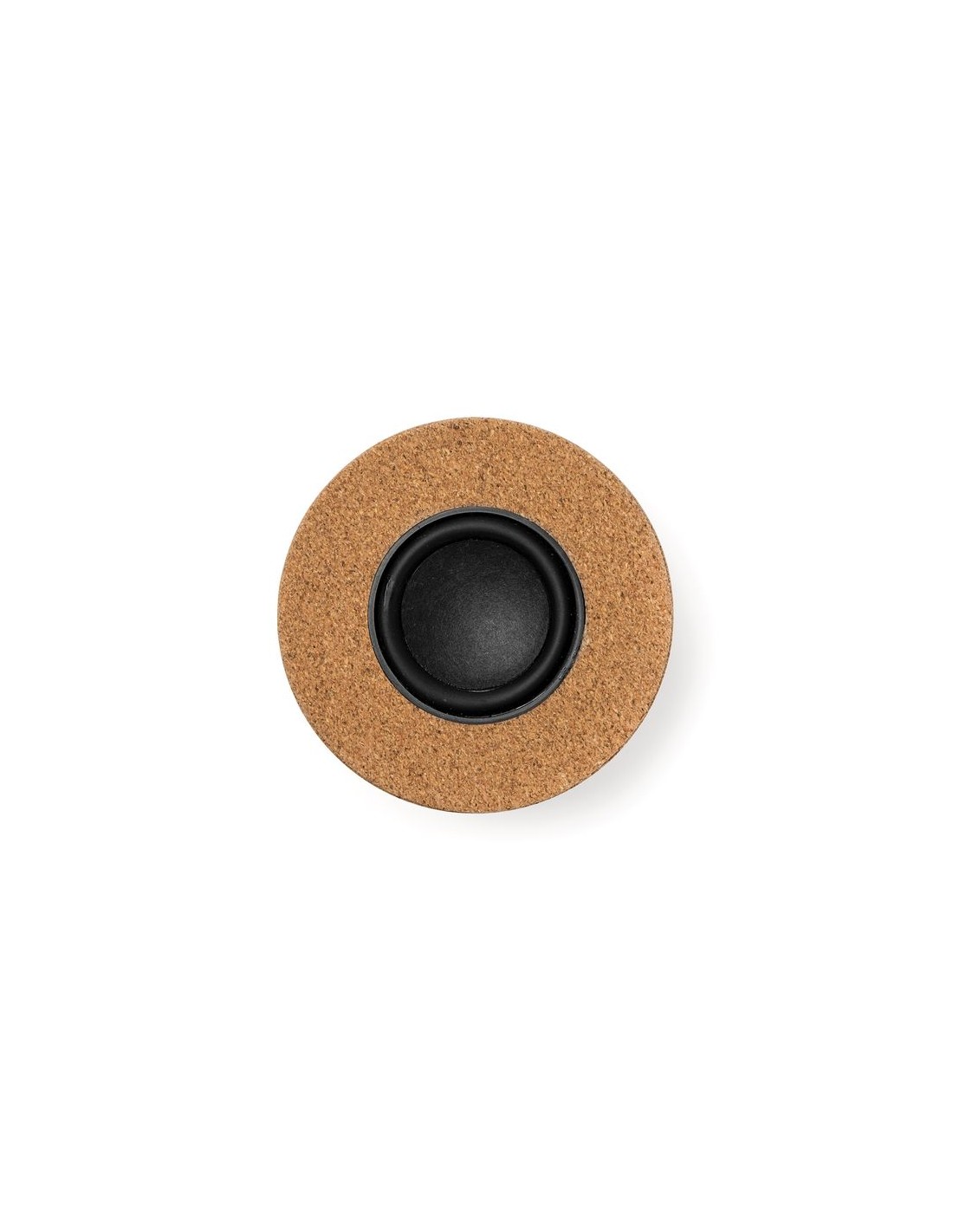 Altoparlante con corpo in sughero naturale e membrana a vista, bluetooth 5.0, potenza 3W, batteria ricaricabile, cavo incluso.