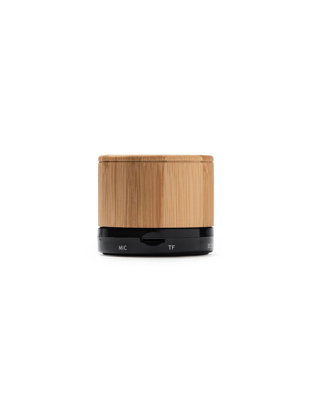 Cassa wireless Bluetooth con corpo in bambù naturale, realizzata con funzione radio FM, vivavoce, slot per schede micro SD, questa cassa ha una potenza di 3W e una batteria ricaricabile, include il cavo e viene fornita in una scatola di design ecologico, versione del Bluetooth 2.1 + EDR, tensione di ricarica: DC 5V, batteria al litio ricaricabile, distanza di funzionamento: fino a 10 metri, frequenza: 280Hz – 16KHz, sensibilità: 95db ± 2db. Uscita: 4Ω, 3W. Cavo audio da 3,5 mm incluso, con connessione USB e micro USB.