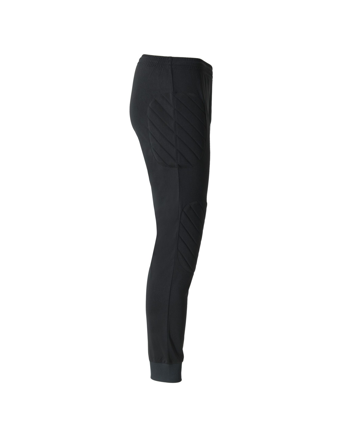 Pantalone lungo da portiere unisex, con inserti laterali imbottiti e ginocchiere, girovita elastico con cordoncino interno regolabile, parte inferiore con elastico.