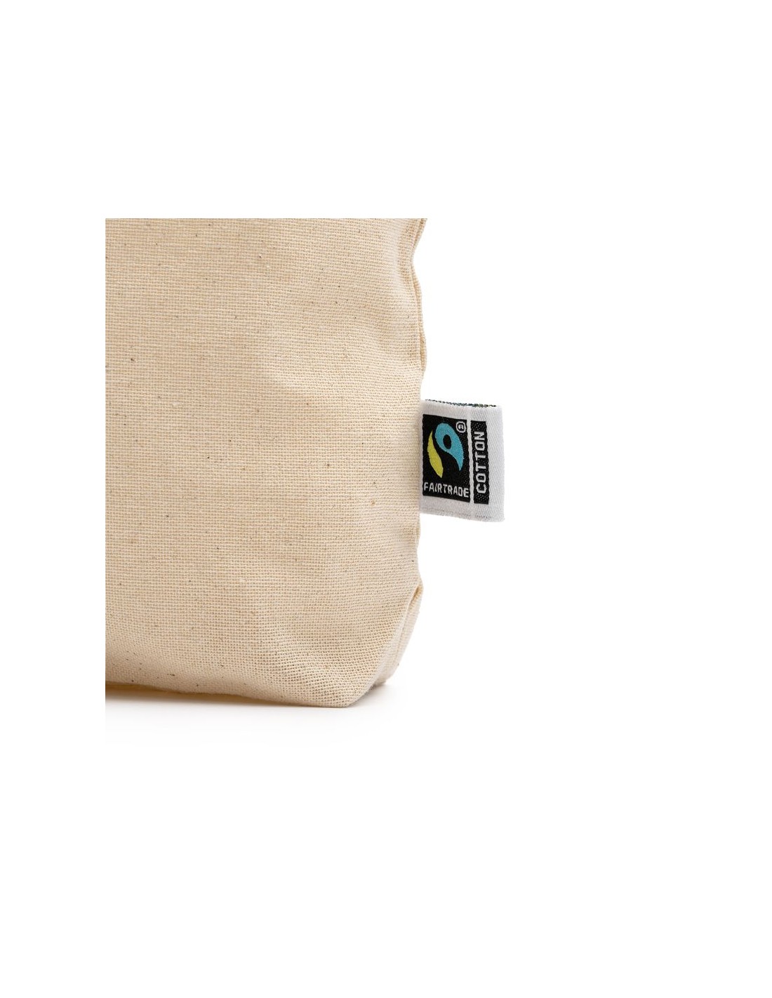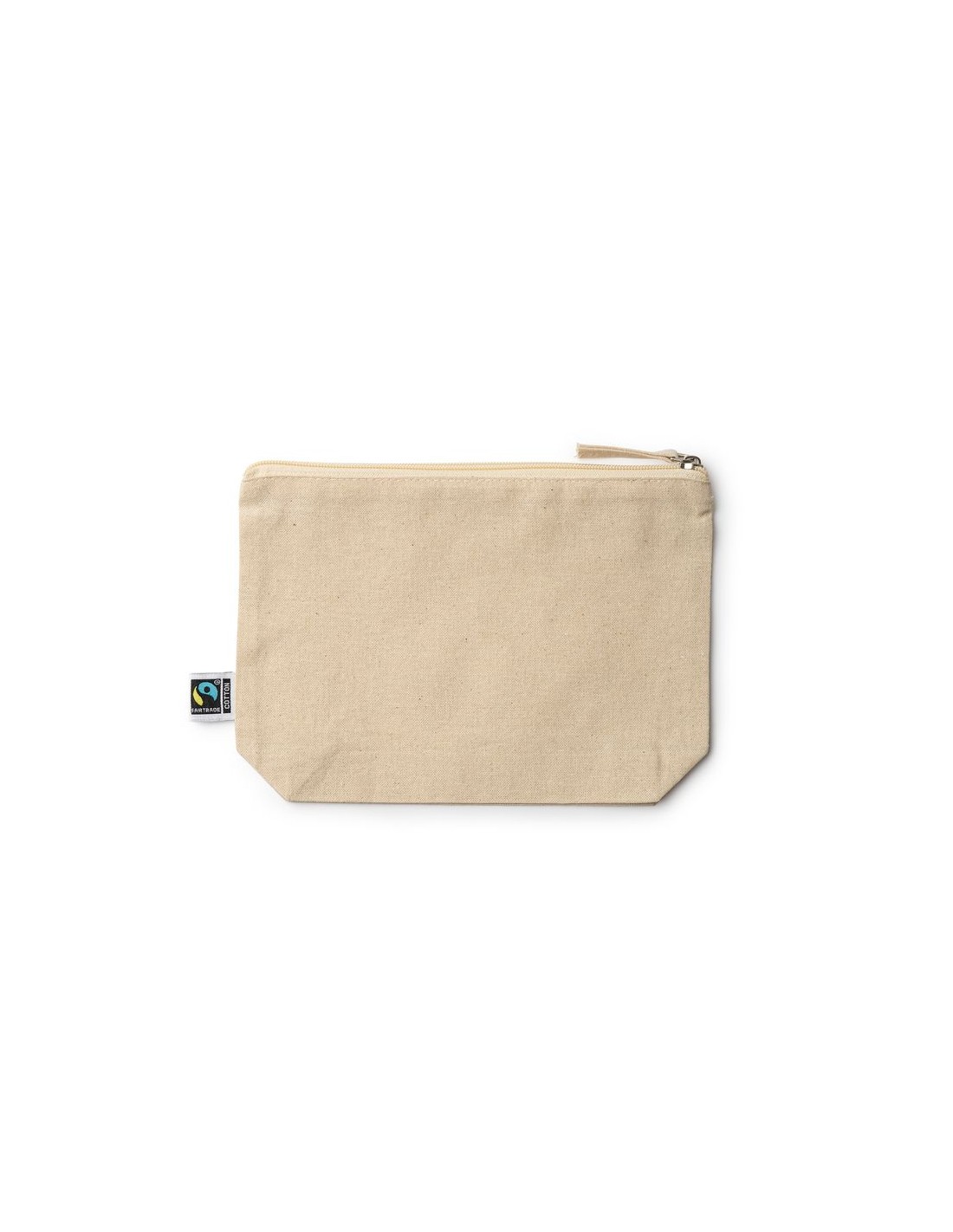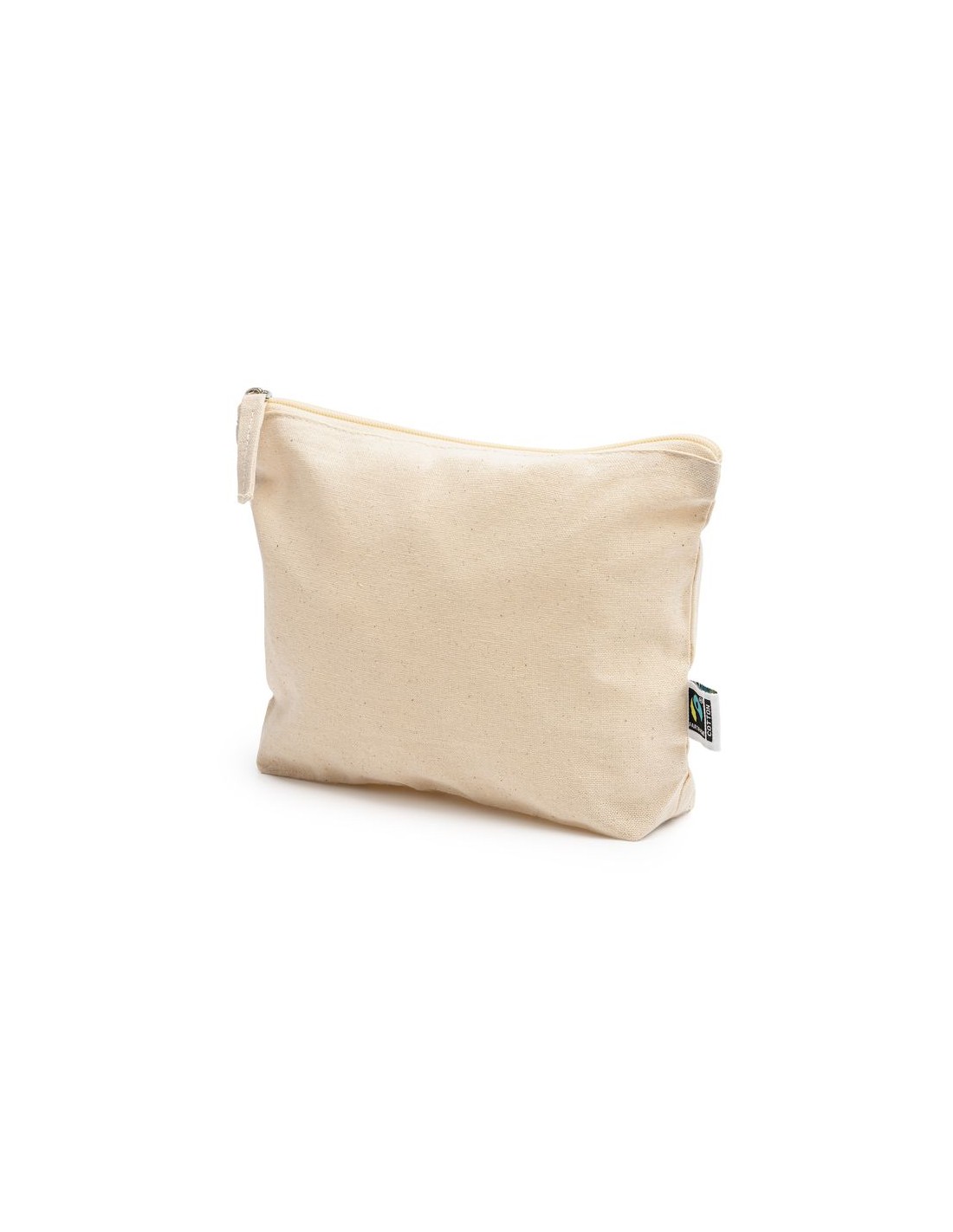 Borsa da toilette multifunzionale in 100% cotone equosolidale (180 g/m²), tasca principale con cerniera e tiretto abbinati.