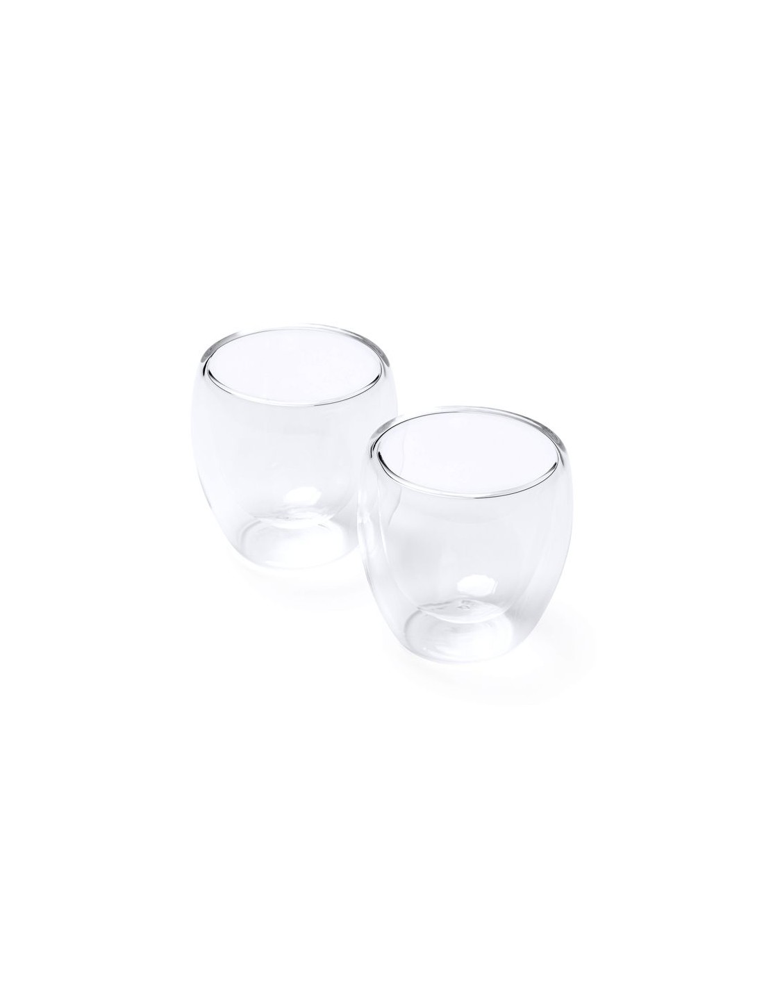 Set di 2 bicchieri a doppia parete in vetro borosilicato, capacità 75 ml. confezione in scatola dal design ecologico.