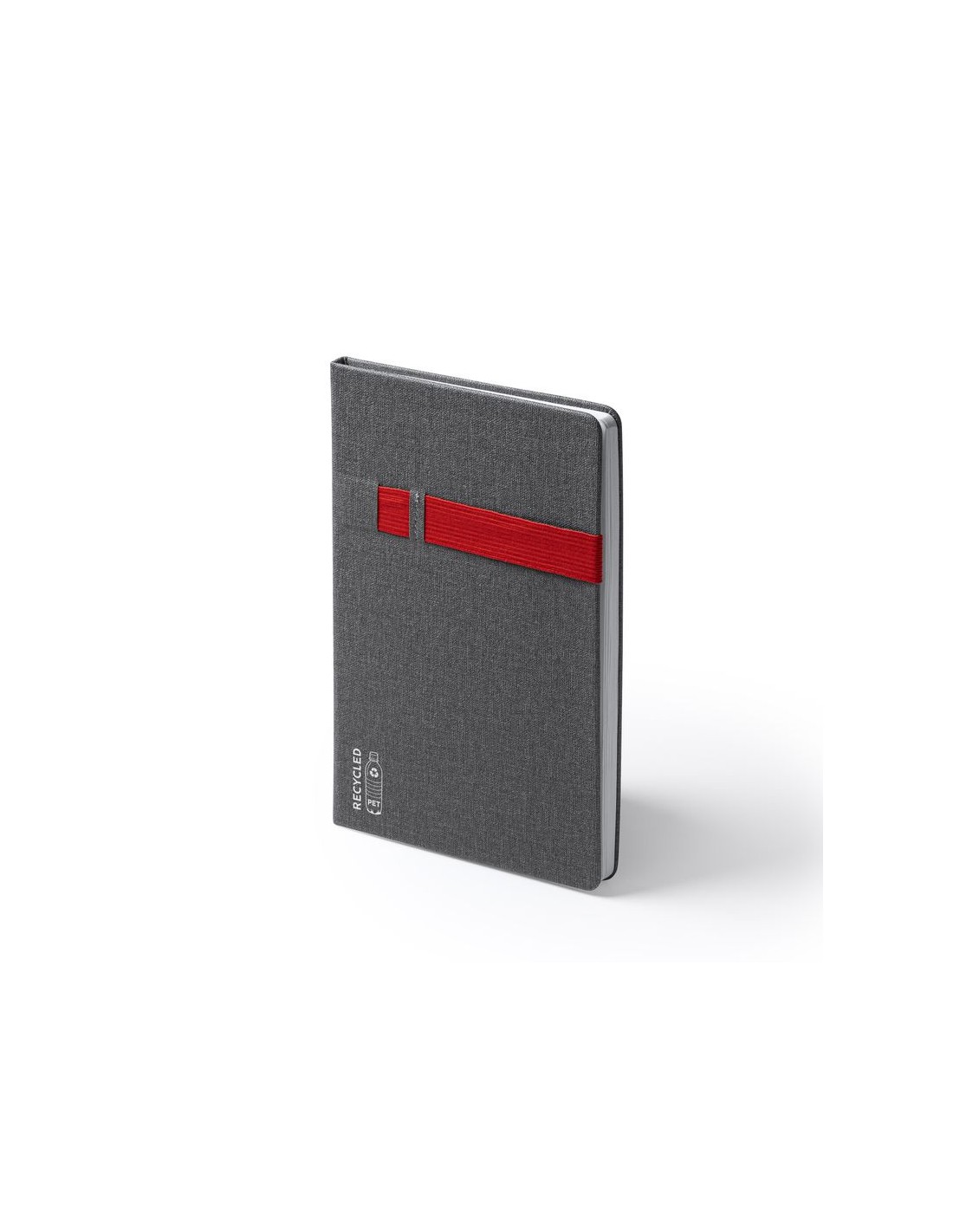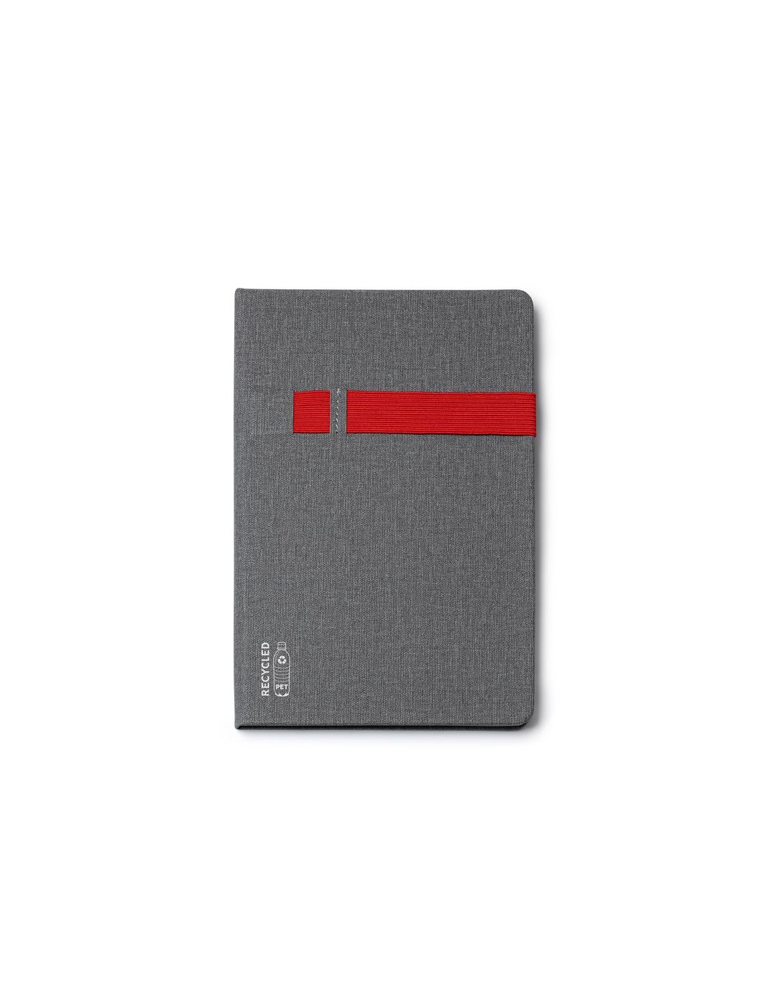 Quaderno A5 con copertina rigida in RPET, penna e supporto mobile inclusi, 80 fogli bianchi.
