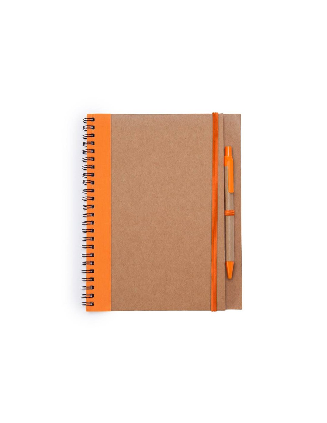 Blocco note a spirale con copertina rigida in carta riciclata, il blocco note contiene una penna coordinata con inchiostro blu, 60 pagine.
