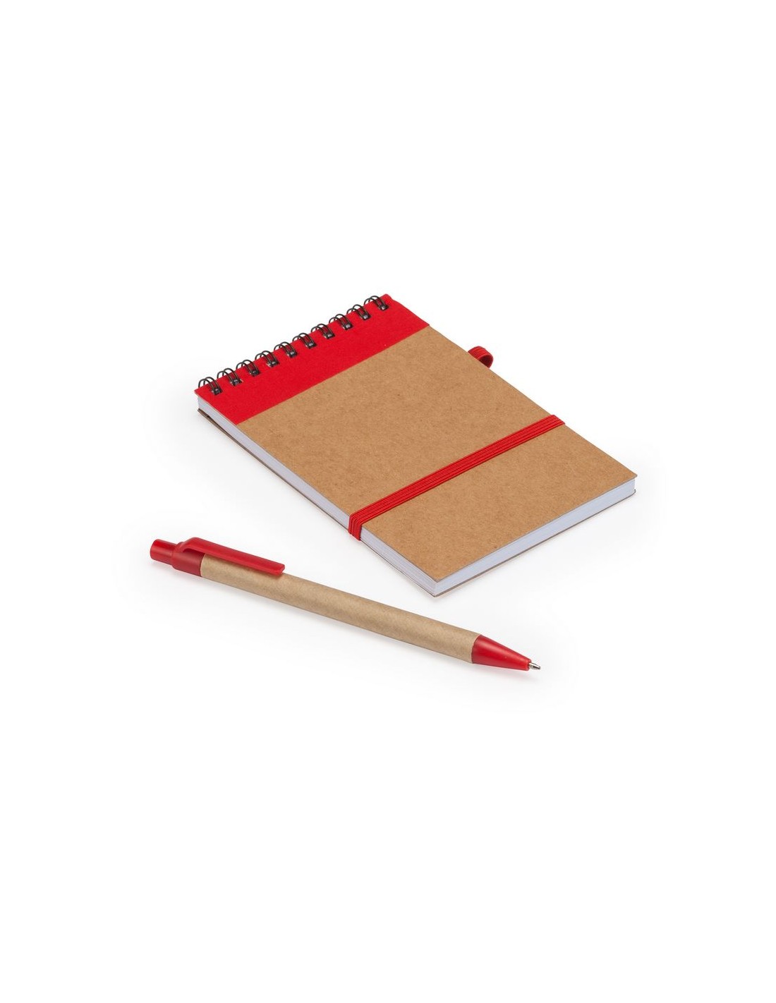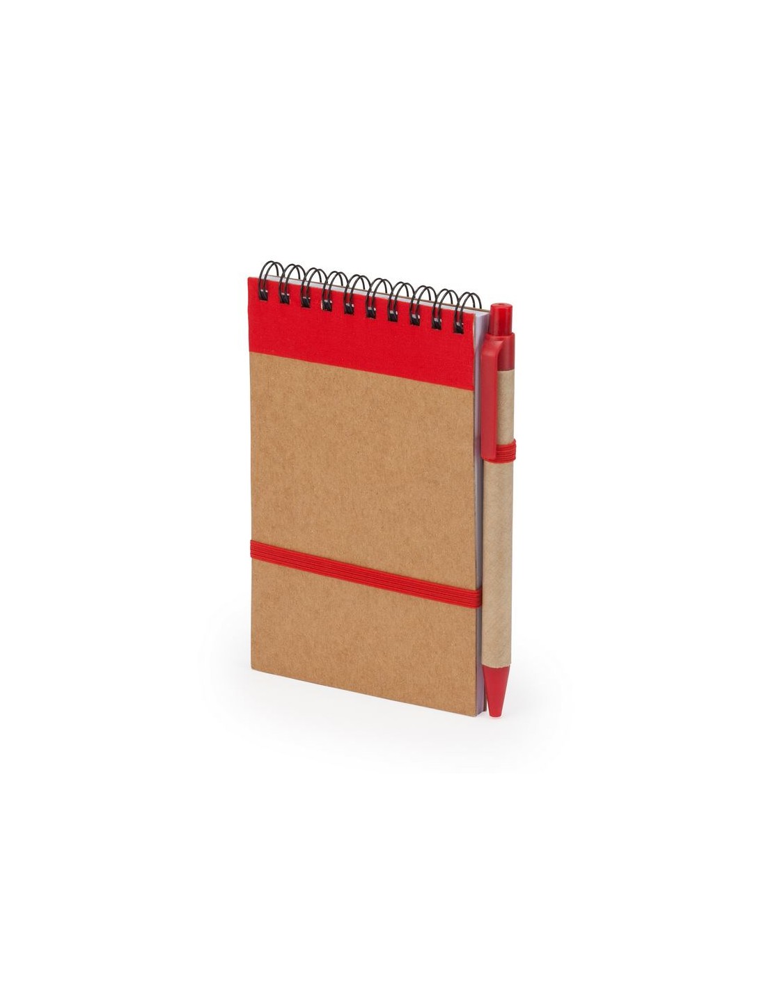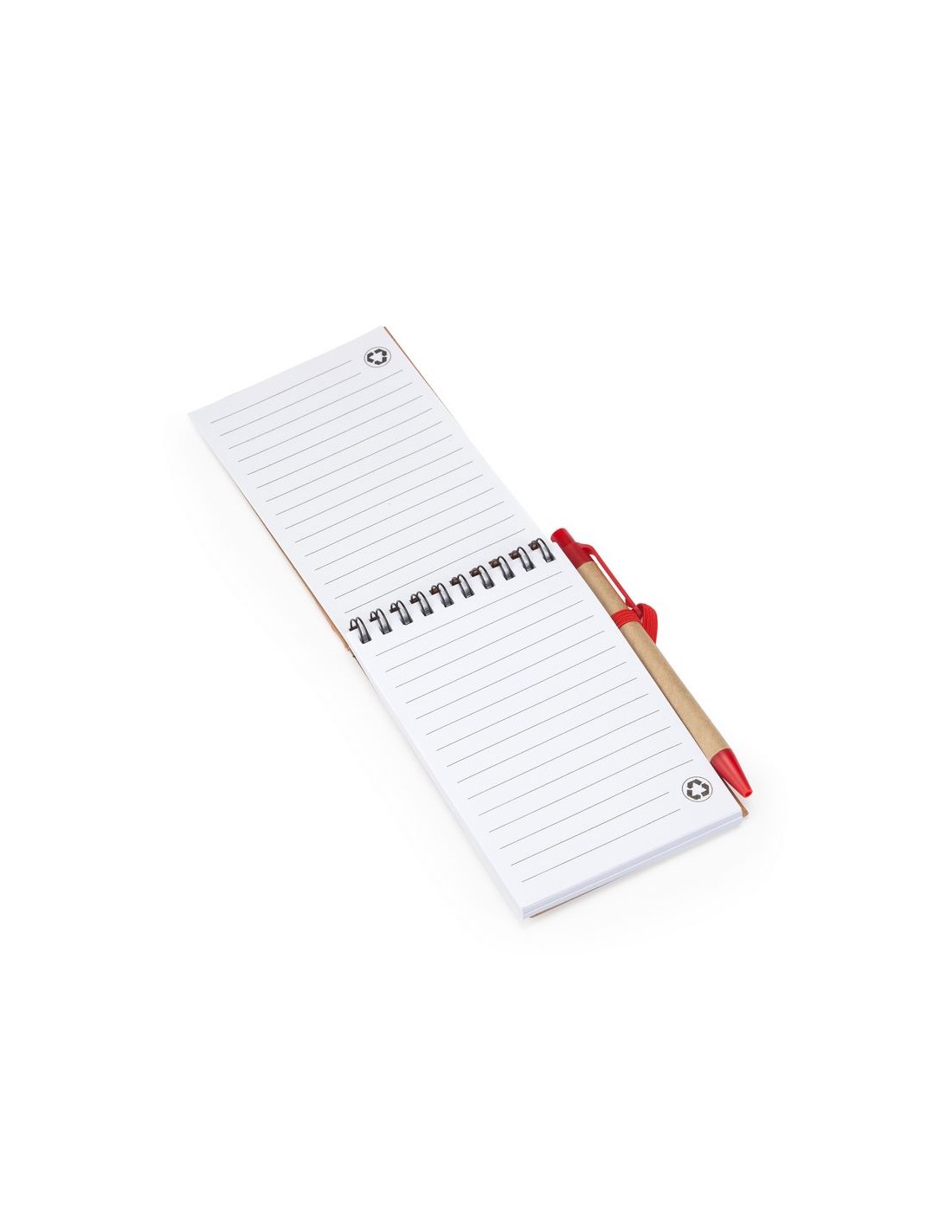 Blocco note a spirale con copertina rigida in carta riciclata, il blocco note contiene una penna coordinata con inchiostro blu, 70 pagine.