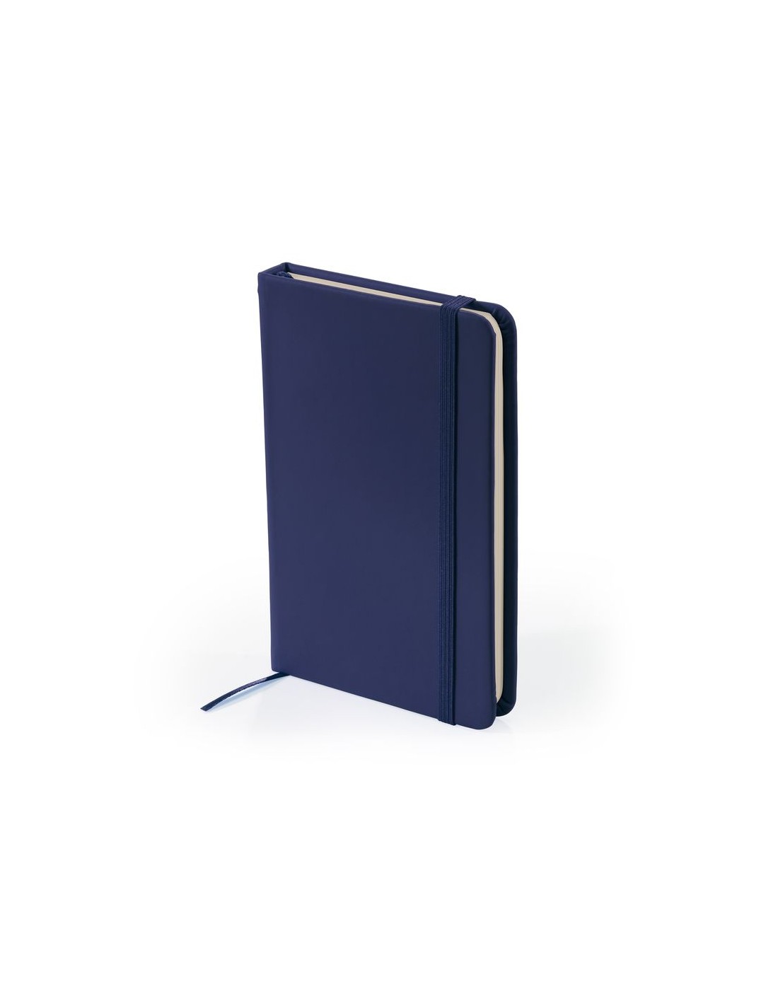 Blocco note formato A6 con copertina rigida in similpelle, chiusura elastica e segnapagina coordinati, 100 pagine.