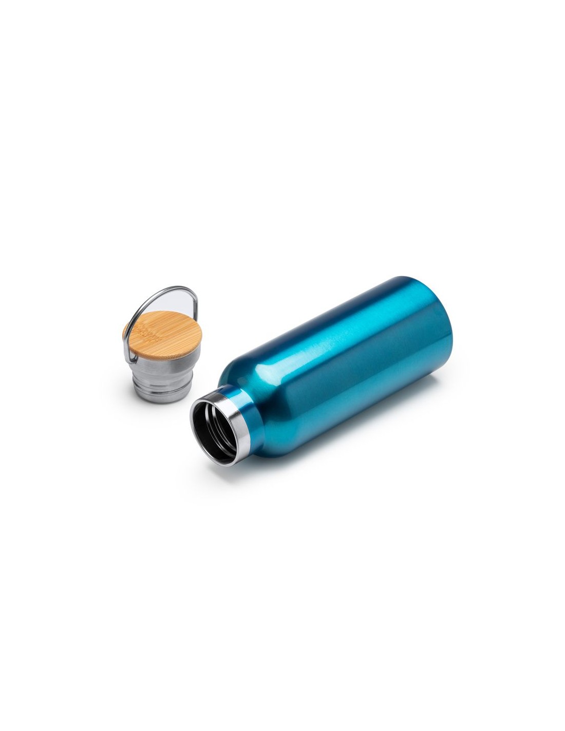 Bottiglia a doppia parete in acciaio inox 304 con coperchio in bambù, capacità 500 ml. possibilità di sublimazione sul colore bianco, manico pieghevole in metallo, disponibile in un'ampia gamma di colori.