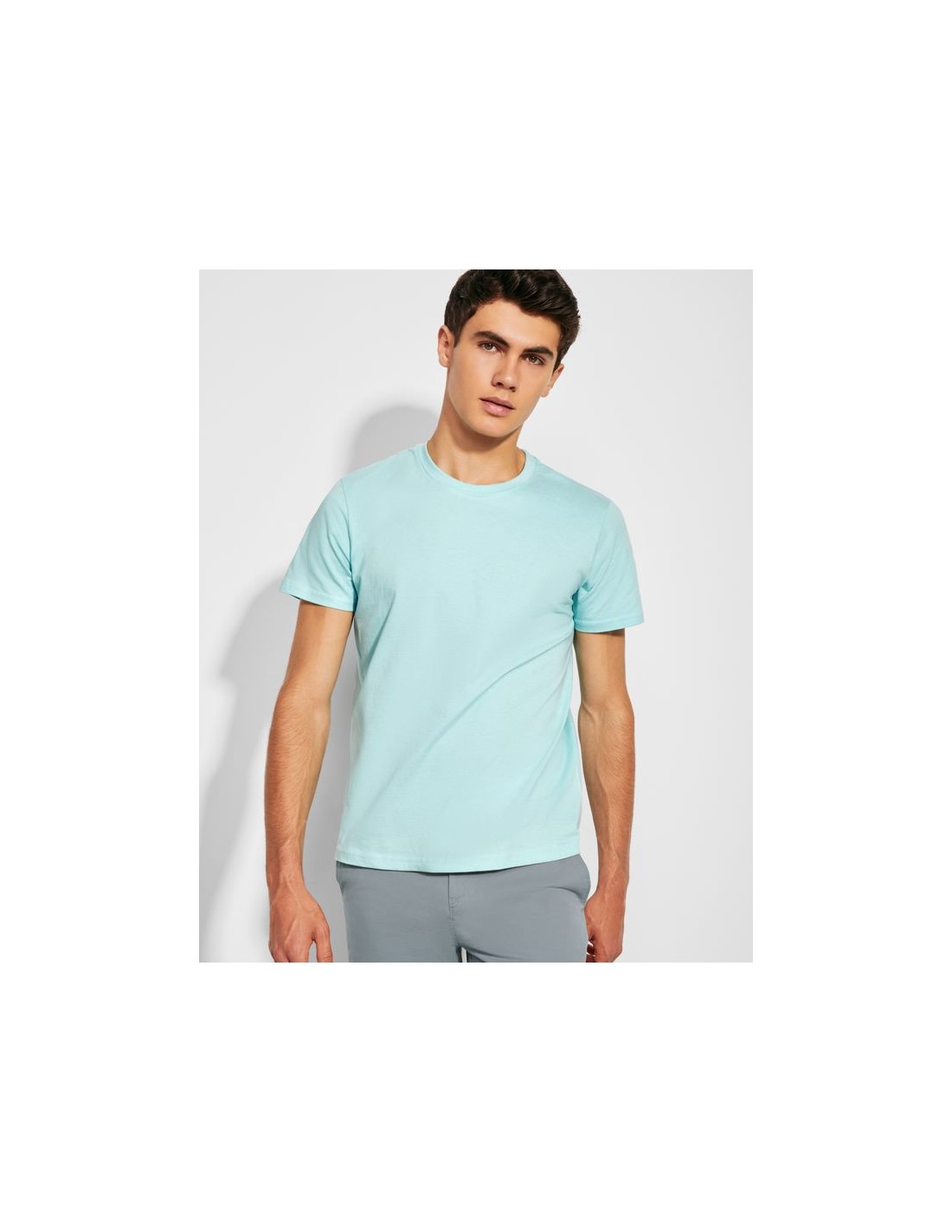 T-shirt manica corta, girocollo doppio con elastane, maglia tubolare per taglie da adulto, per le taglie bambino sono presenti le cuciture laterali, copri cuciture rinforzate al collo.