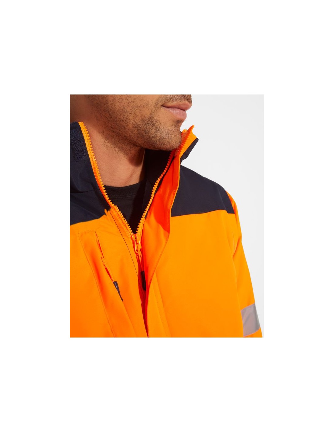 Non dimenticare di salvare la tua personalizzazione per poter riempire il carrelloParka alta visibilità bicolore con maniche staccabili, fascia riflettente sul corpo e maniche, cappuccio avvolgibile con cordone fluo e pulsante regolabile, tasca sul petto con zip, due tasche anteriori leggermente inclinate e di facile accesso, girovita con elastico, polsini regolabili con chiusure elastiche e velcro, allacciatura centrale con velcro e zip fluo centrale con tiretto, tasca interna sul petto e cerniera interna per facile accesso per stampa o ricamo, maniche staccabili.