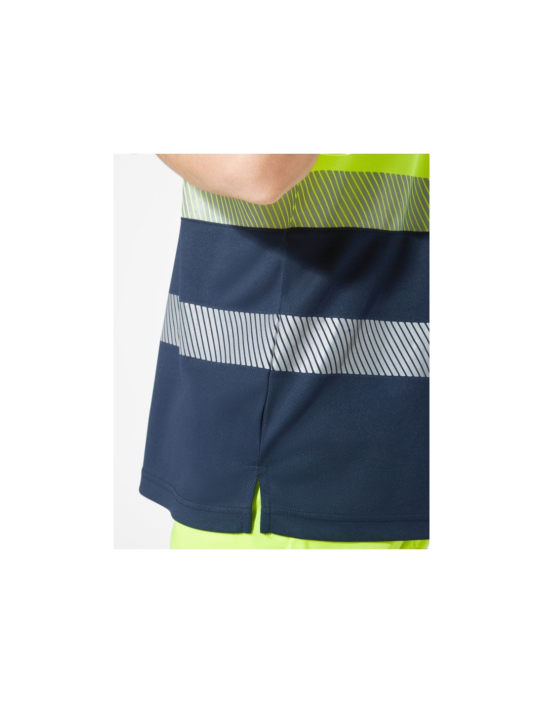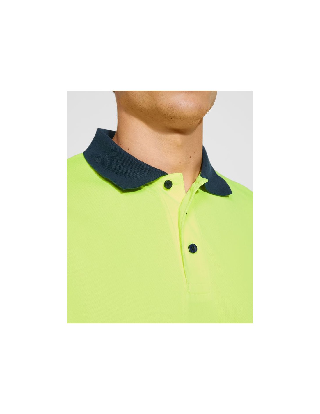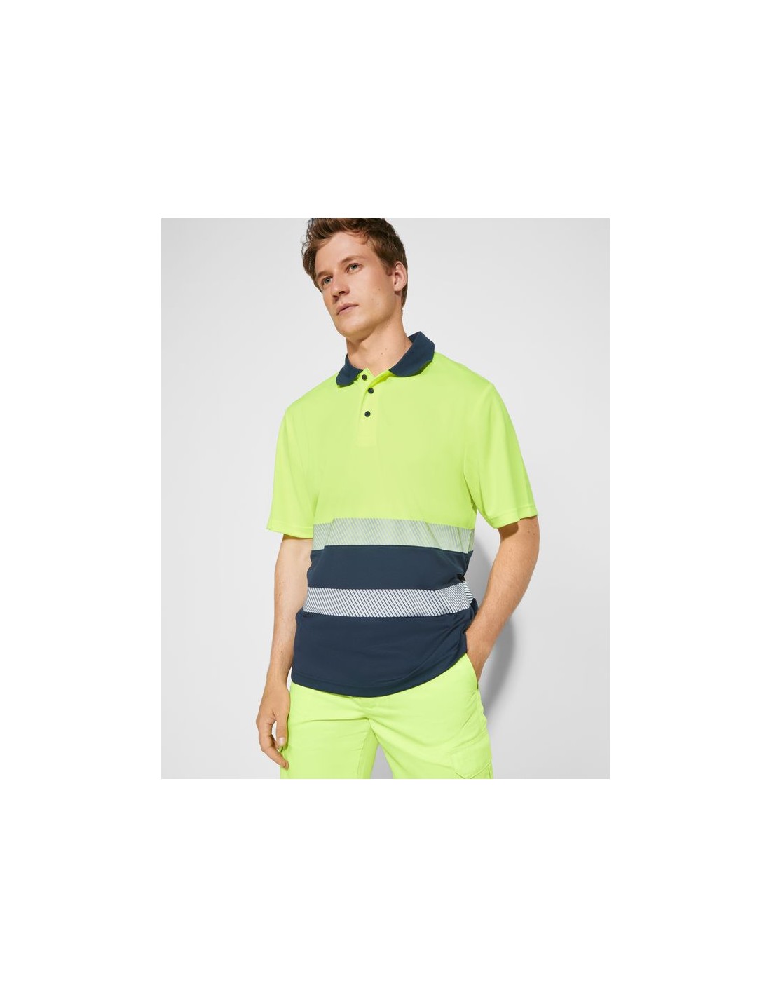 Polo tecnica ad alta visibilità a maniche corte, due bande riflettenti segmentate sul petto e sulla schiena, pattina con 3 bottoni a contrasto, colletto in maglia a coste 1x1, tessuto antistrappo e di facile asciugatura, tasca opzionale.