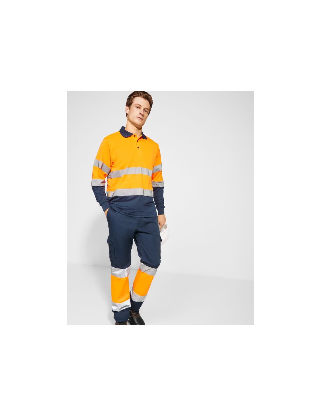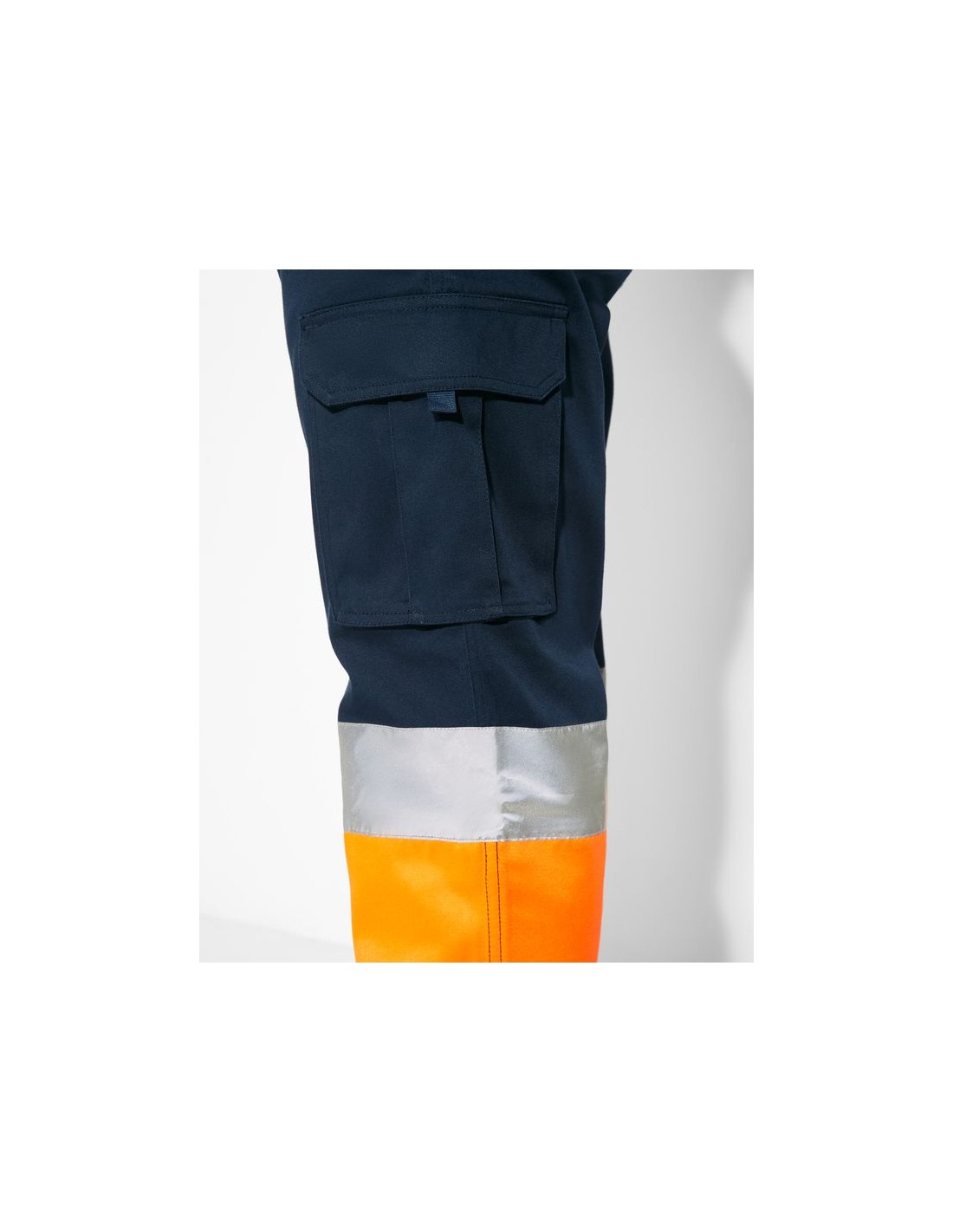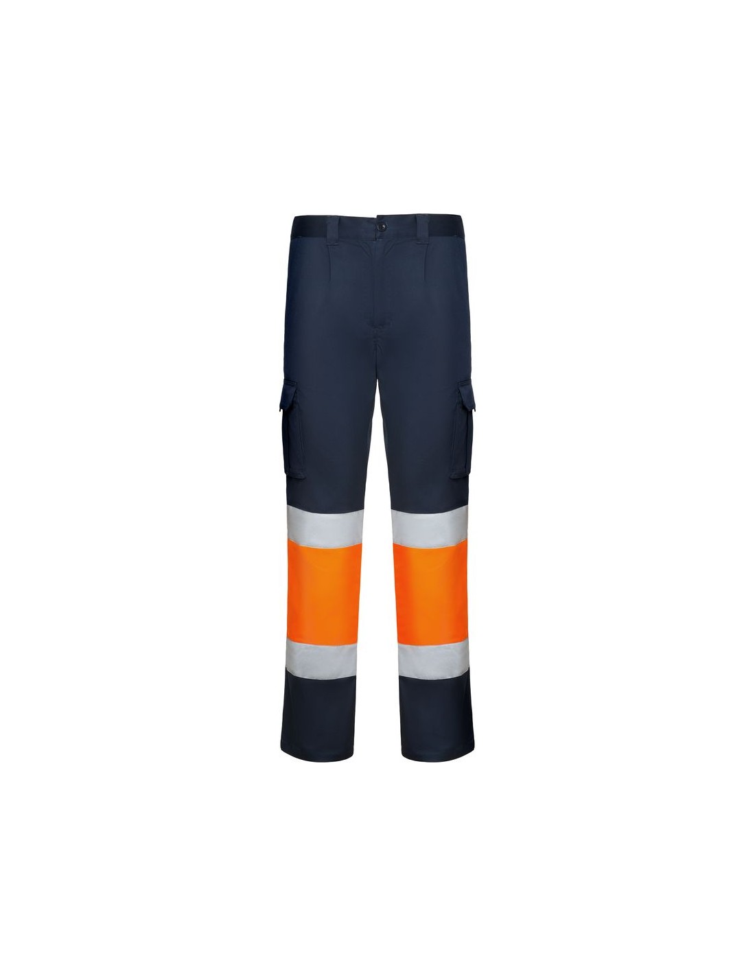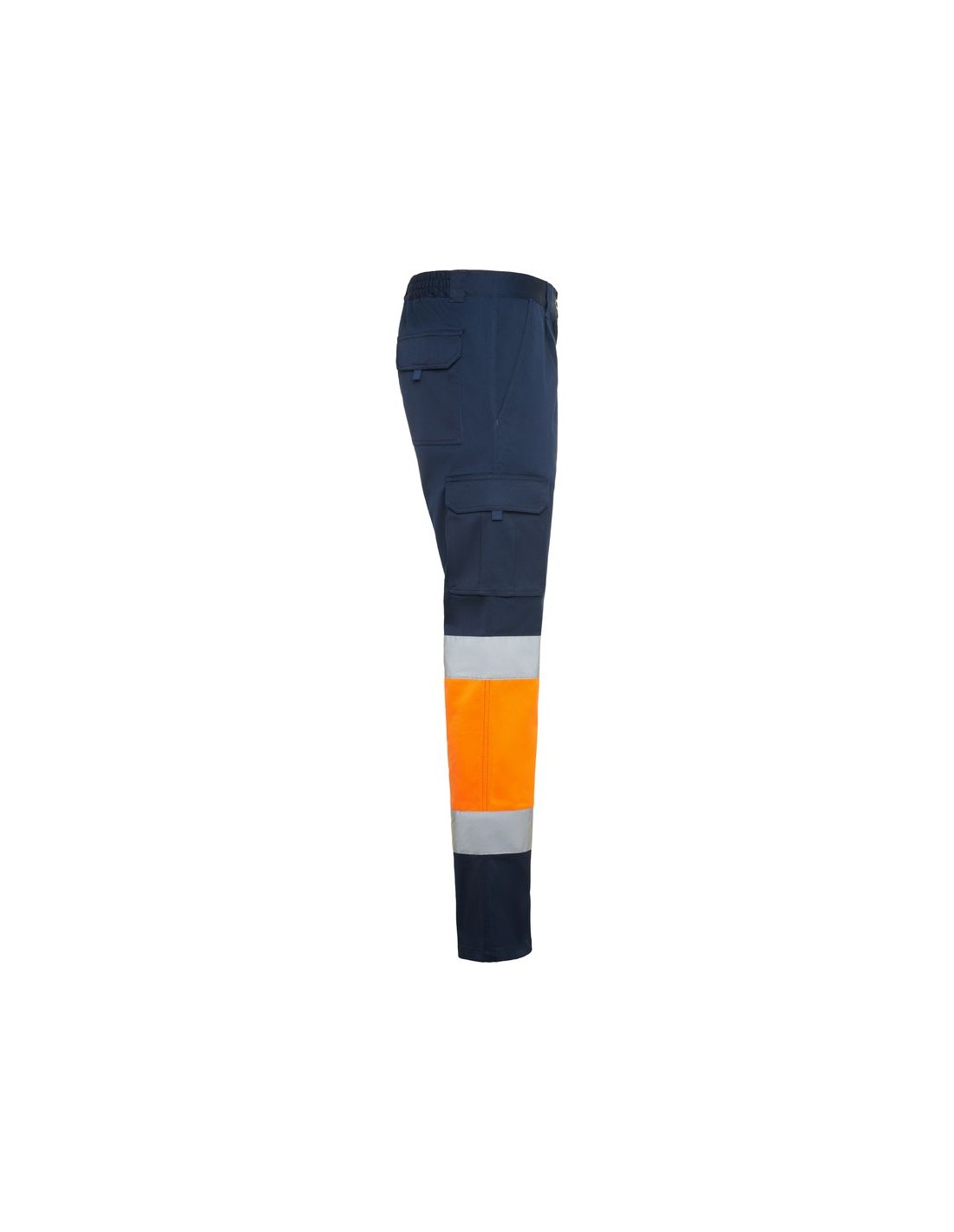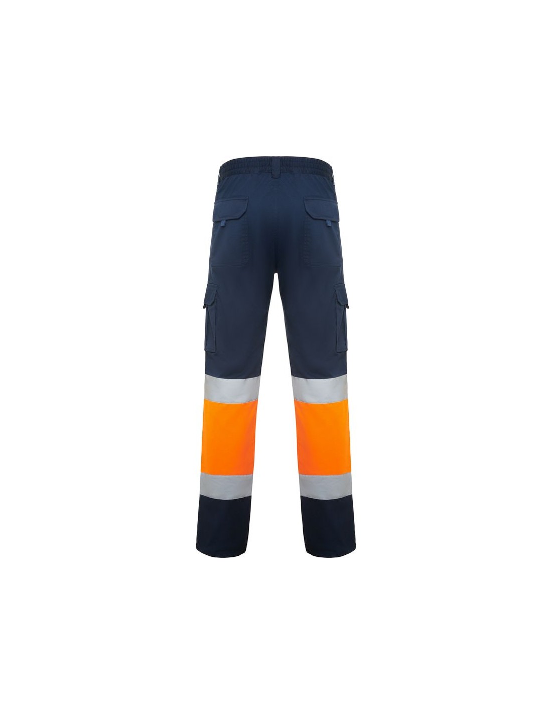 Pantalone lungo multitasche alta visibilità, tessuto confortevole e flessibile, vita elasticizzata regolabile sul retro, due tasche anteriori, due tasche posteriori con patta e chiusura in velcro, due tasche laterali a soffietto con patella e chiusura in velcro, bicolore e nastri riflettenti.