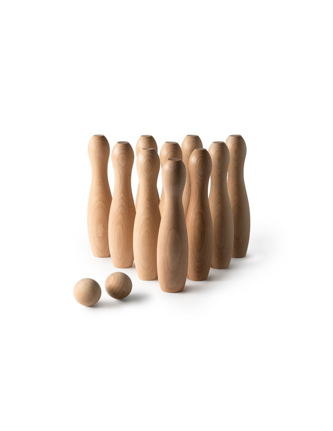 Set di birilli in legno con 10 birilli e 2 palline, custodia in cotone inclusa, facile da trasportare, confezione in scatola dal design ecologico.