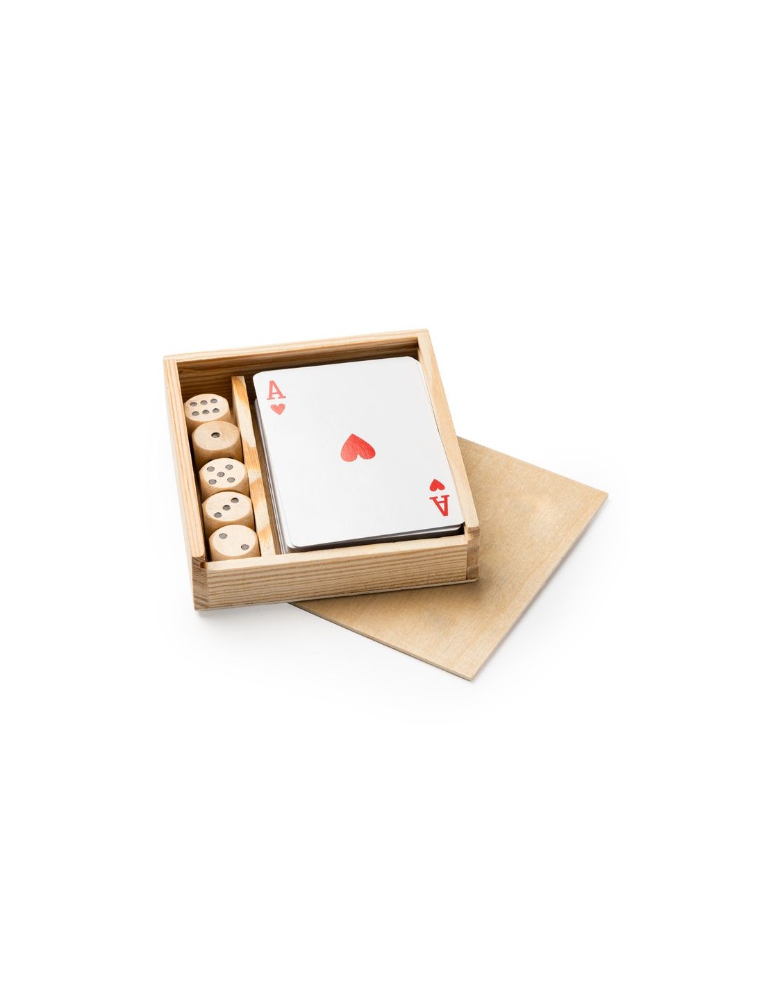 Set di 2 giochi da tavolo: mazzo francese e dadi.