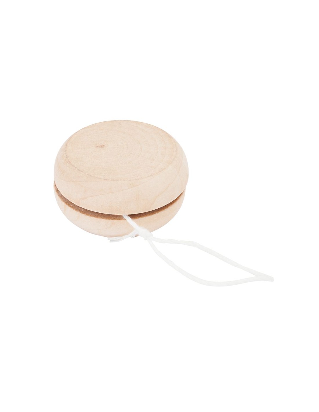 Yo-yo in legno naturale con cordino da 75 cm di colore bianco.