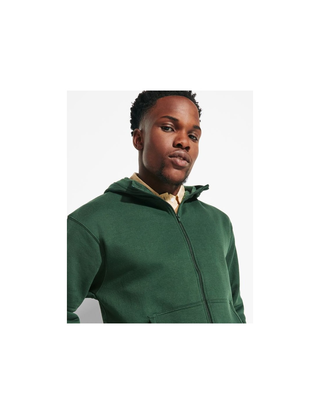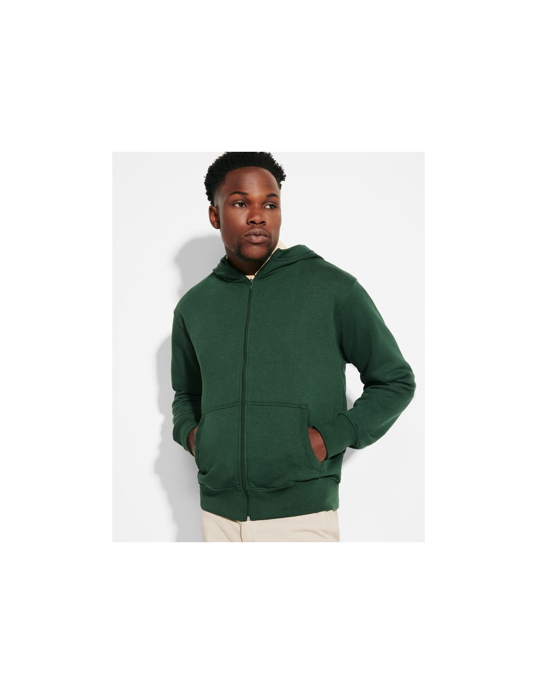 Felpa stile casual con cappuccio, collo altto e cerniera lunga, particolari in costina intorno a cappuccio e tasca, tasca stile canguro, polsini e girovita in costina 2x2 con elastane.