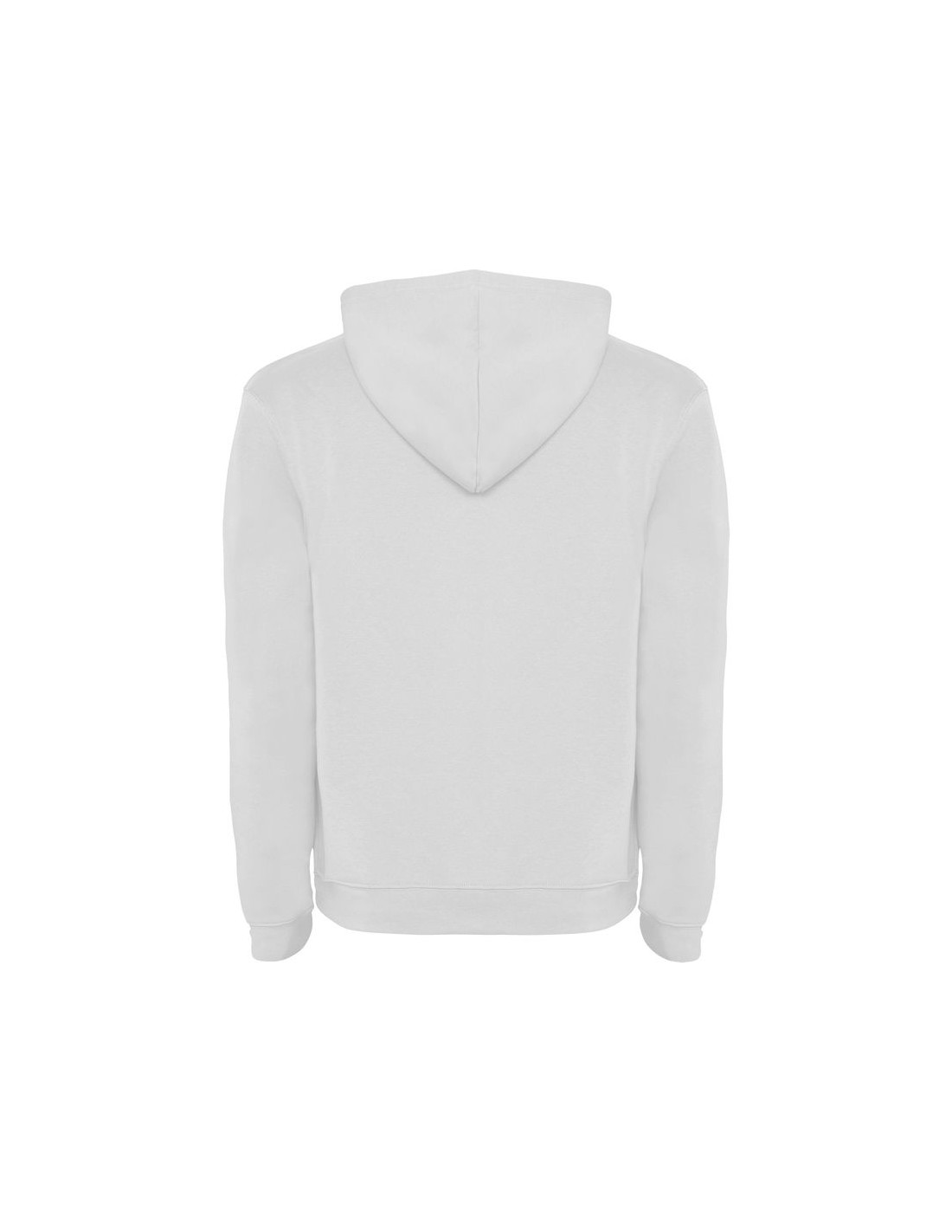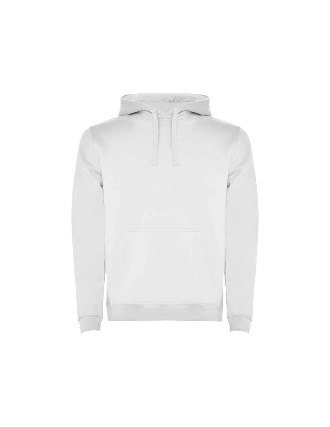 Felpa con cappuccio bicolore, tessuto doppio, con cordone regolabile, tasca frontale. Costine 1x1 su polsini e girovita, modello bambino senza cordone.