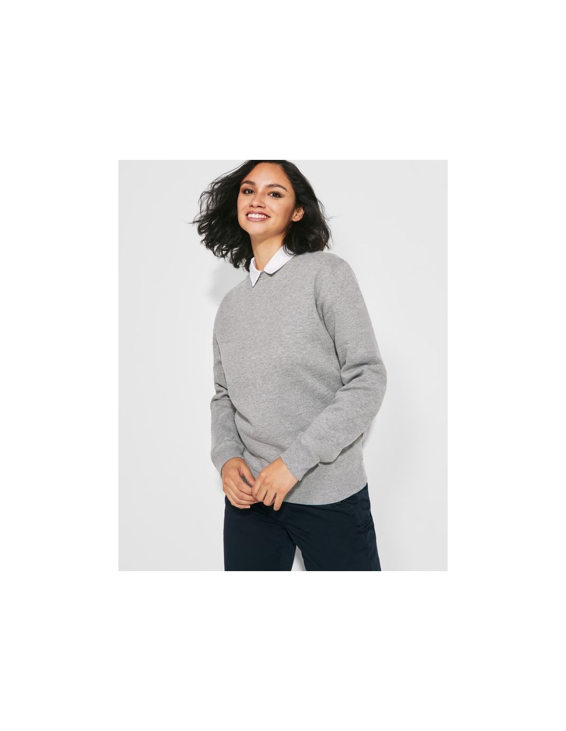 Felpa unisex in cotone organico pettinato e poliestere riciclato, collo, polsini e girovita a costine 2x1, cuciture ricamate su spalla, giromanica, collo, polsini e girovita, mezzaluna all'interno della parte posteriore del collo.