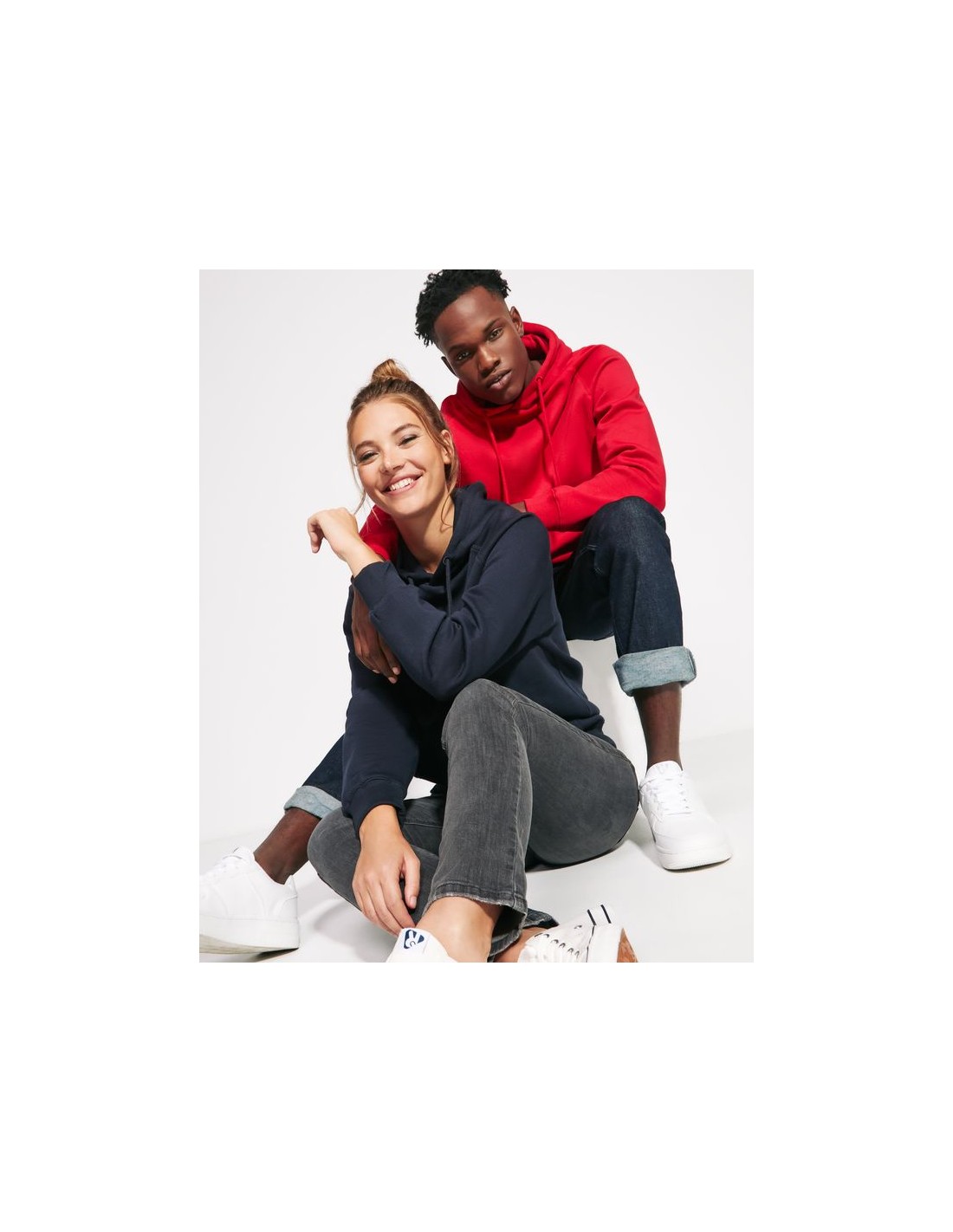 Felpa con cappuccio unisex in cotone organico pettinato e poliestere riciclato, tasca a canguro, cappuccio foderato a maglia liscia e lacci tondi regolabili, occhielli ricamati, collo, polsini e girovita a costine 2x1.