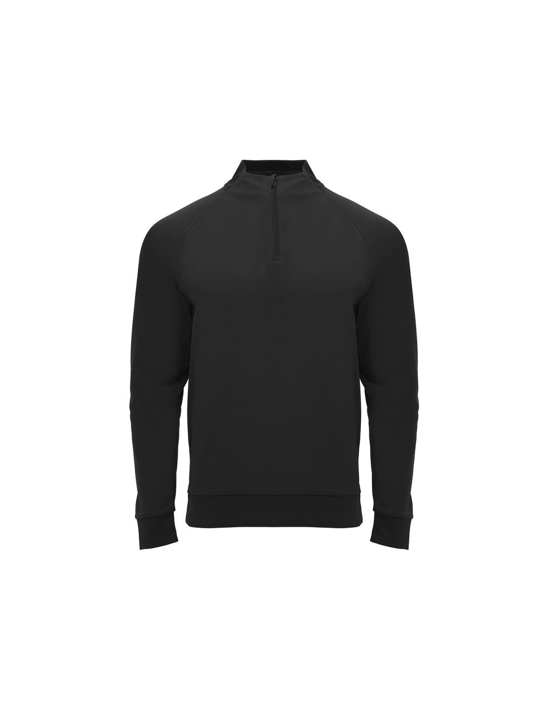 Felpa manica lunga stile ranglan, interno felpato, collo con mezza cerniera e copri cuciture di rinforzo al suo interno in tinta, parte posteriore del collo, polsini e girovita in costina 1x1.