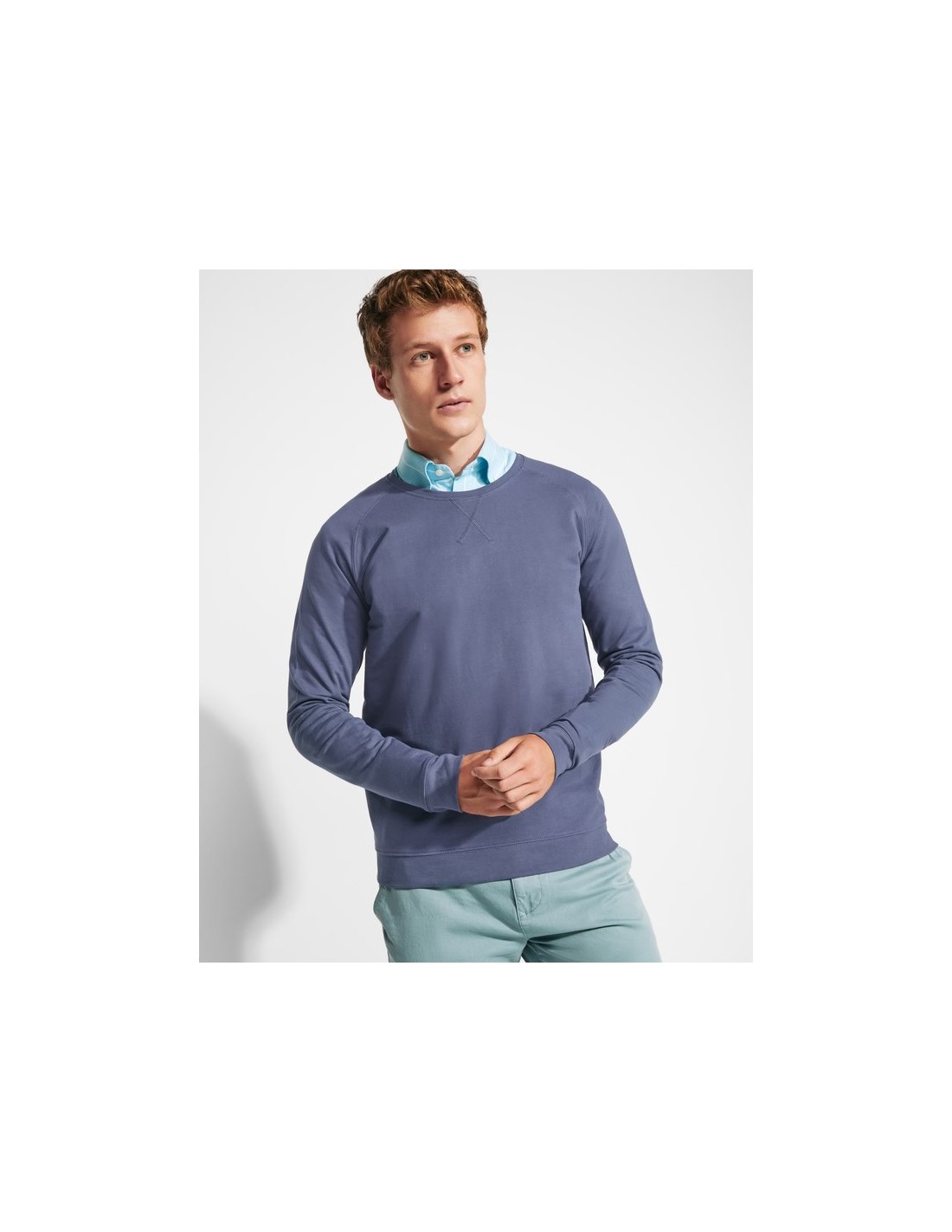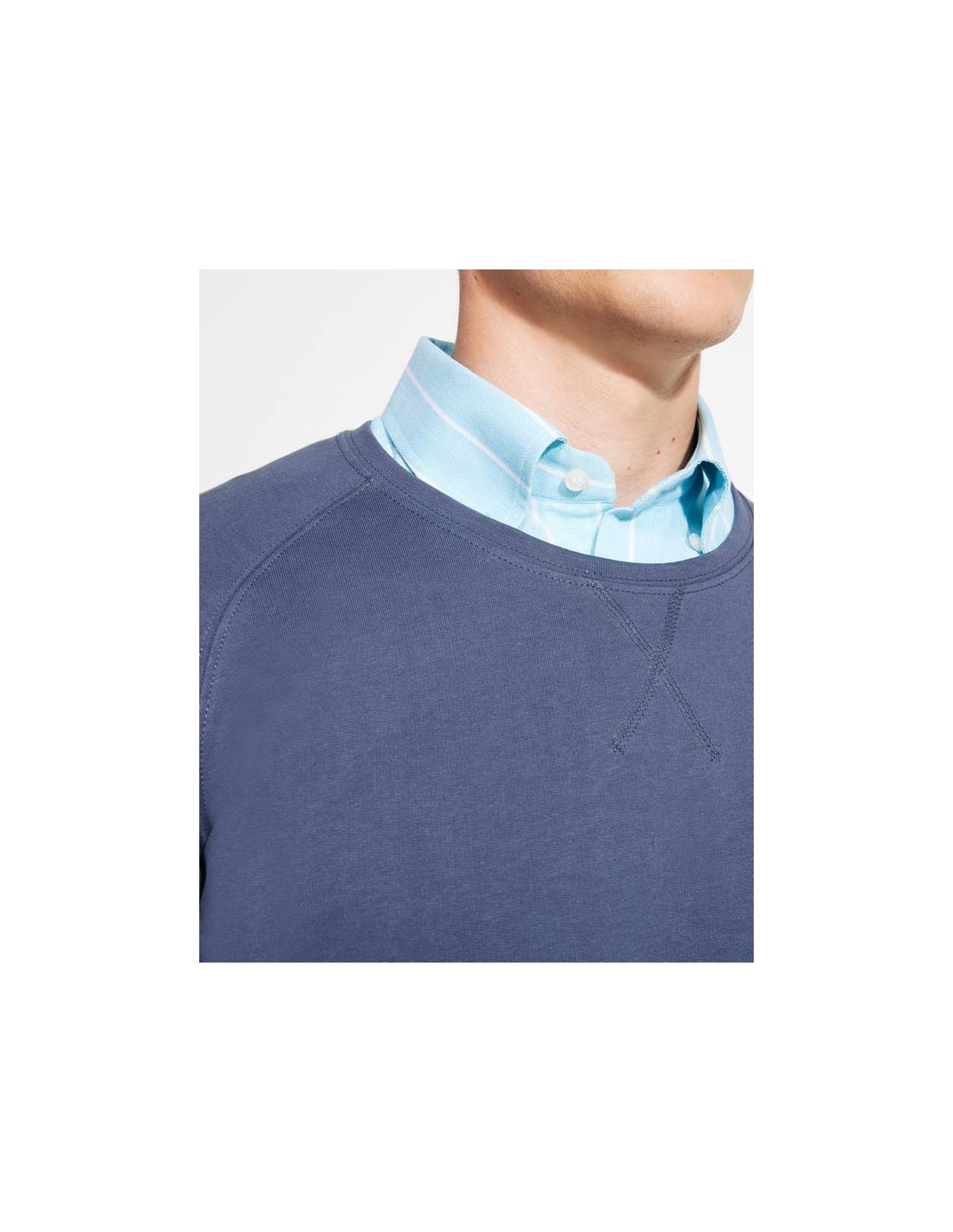 Felpa a maniche lunghe in cotone stile raglan, con colletto, polsini e girovita, in costina 1x1, girocollo con cuciture di decorazione incrociate e copri cuciture di rinforzo all'interno del collo.