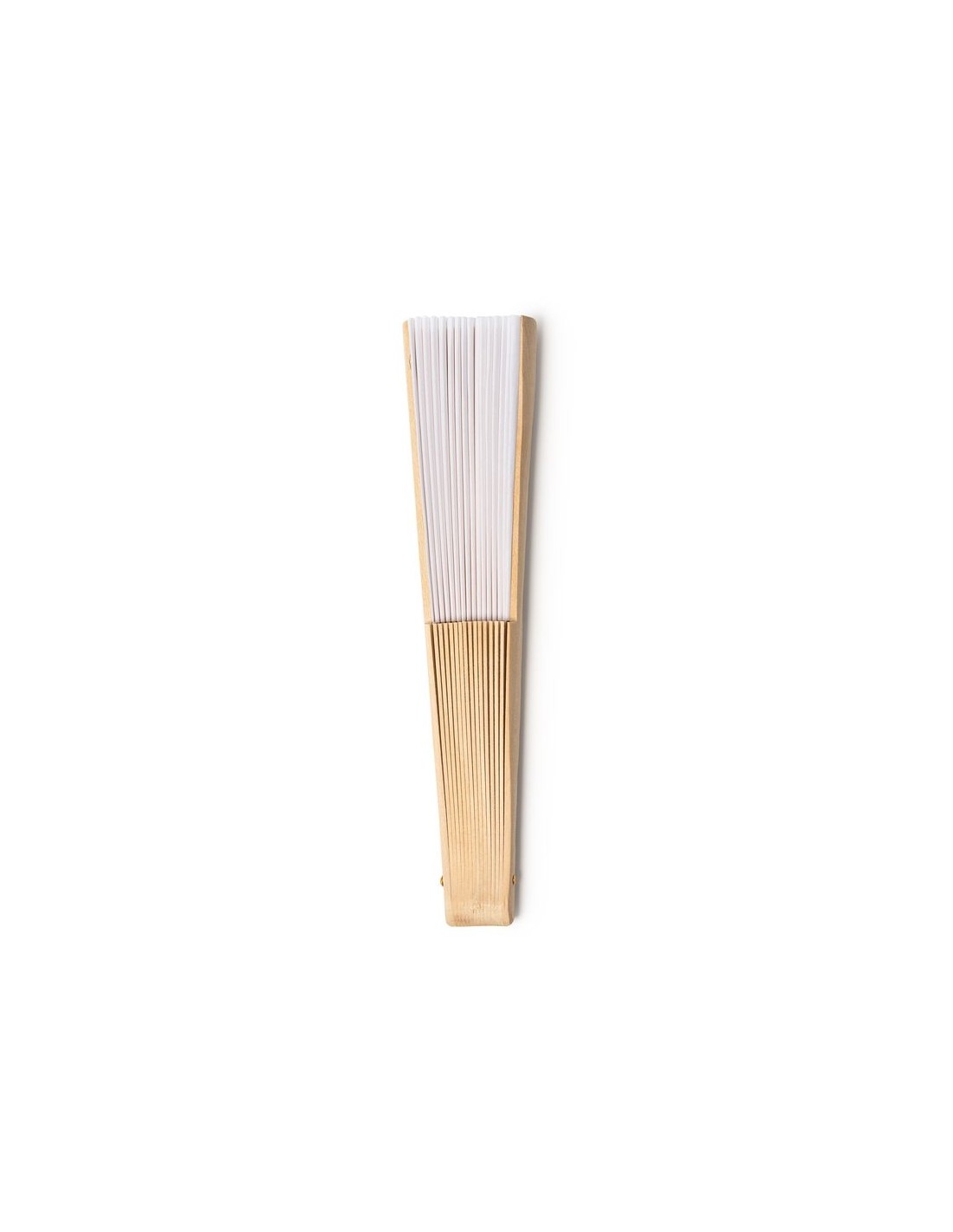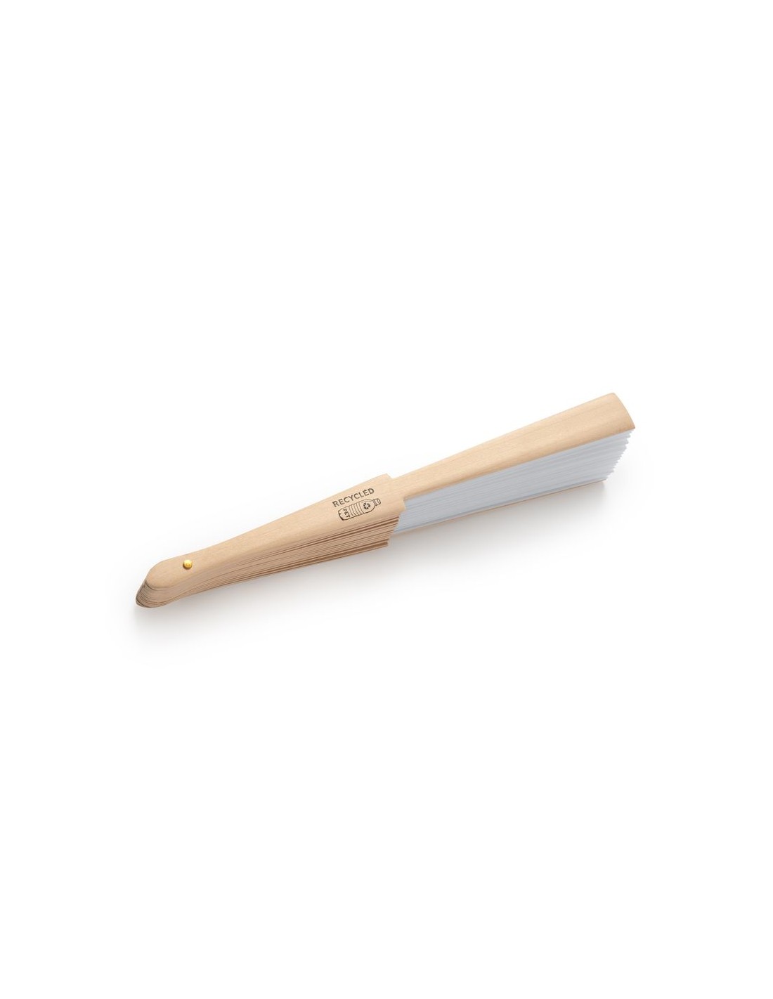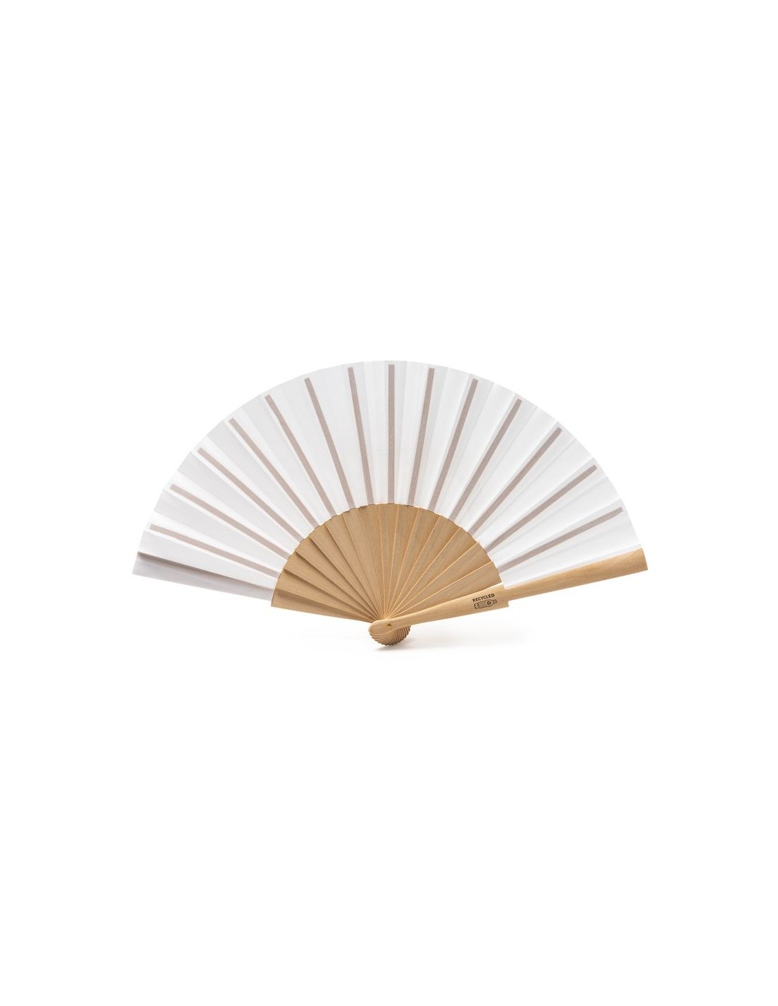 Ventaglio a sezioni in legno e tessuto RPET, confezione in scatola ecologica.