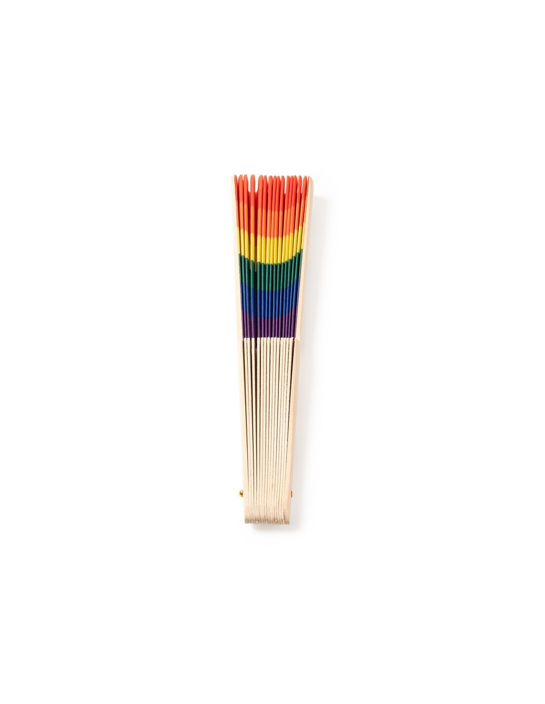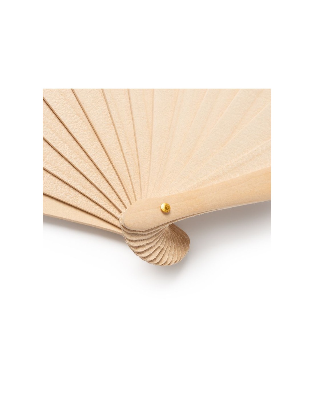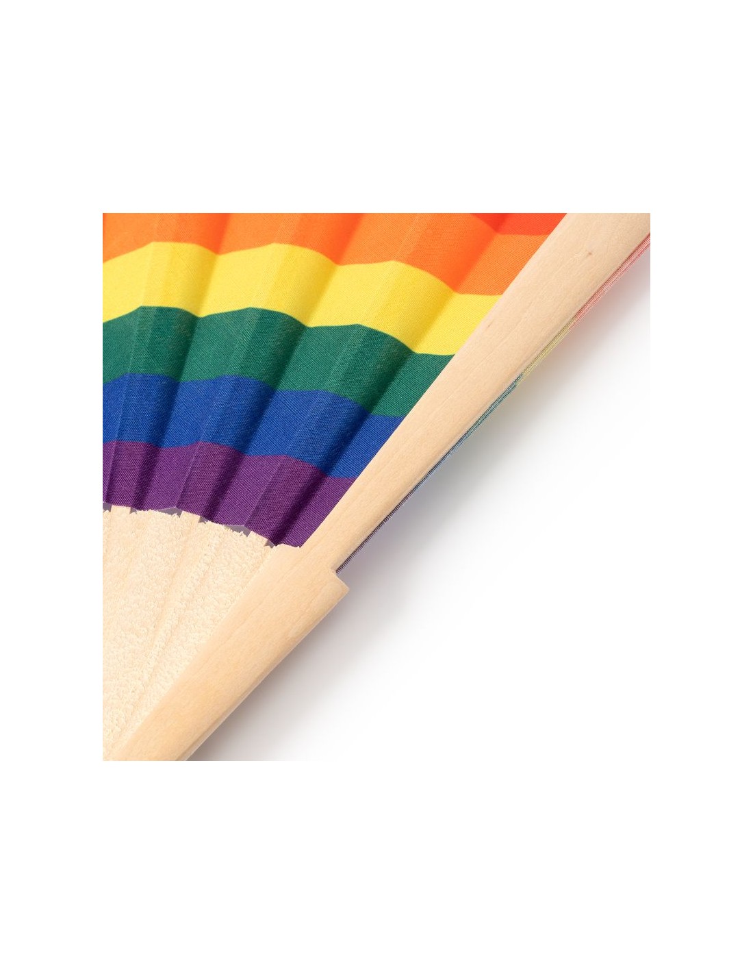 ventaglio a sezioni in legno e tessuto multicolore, confezione in scatola bianca.