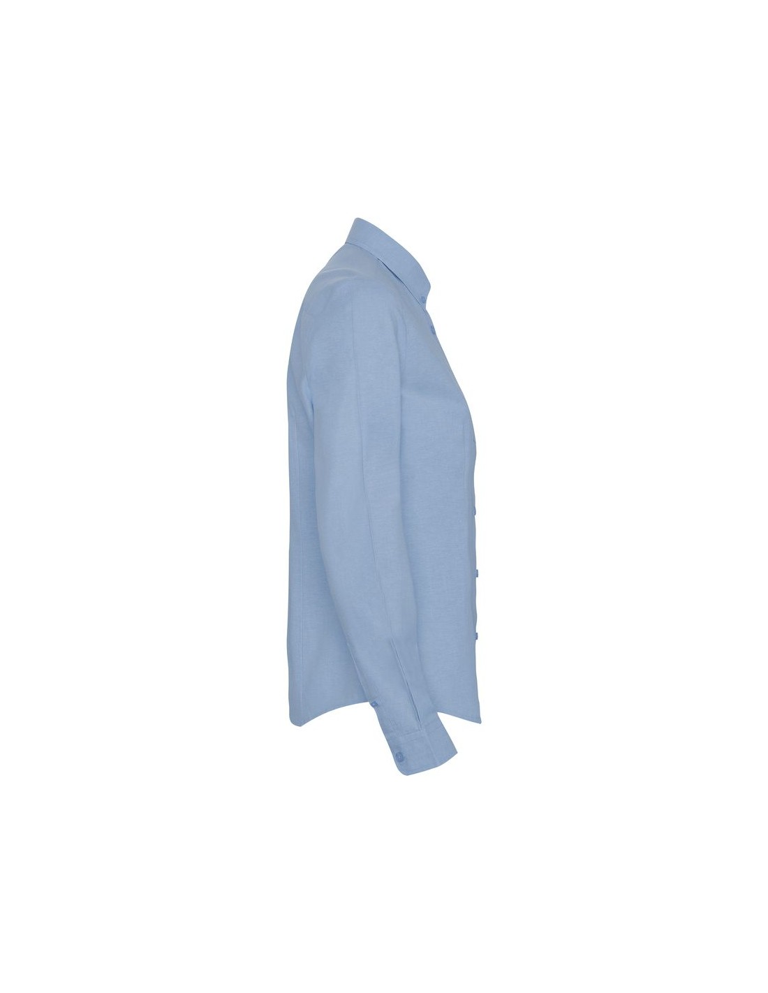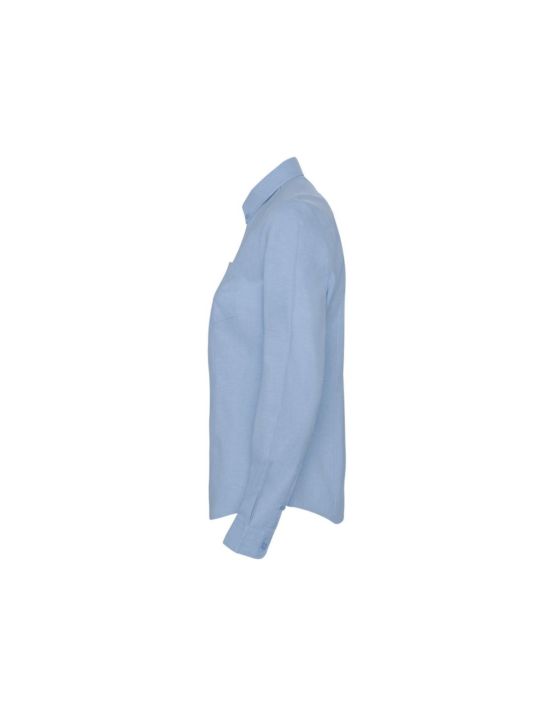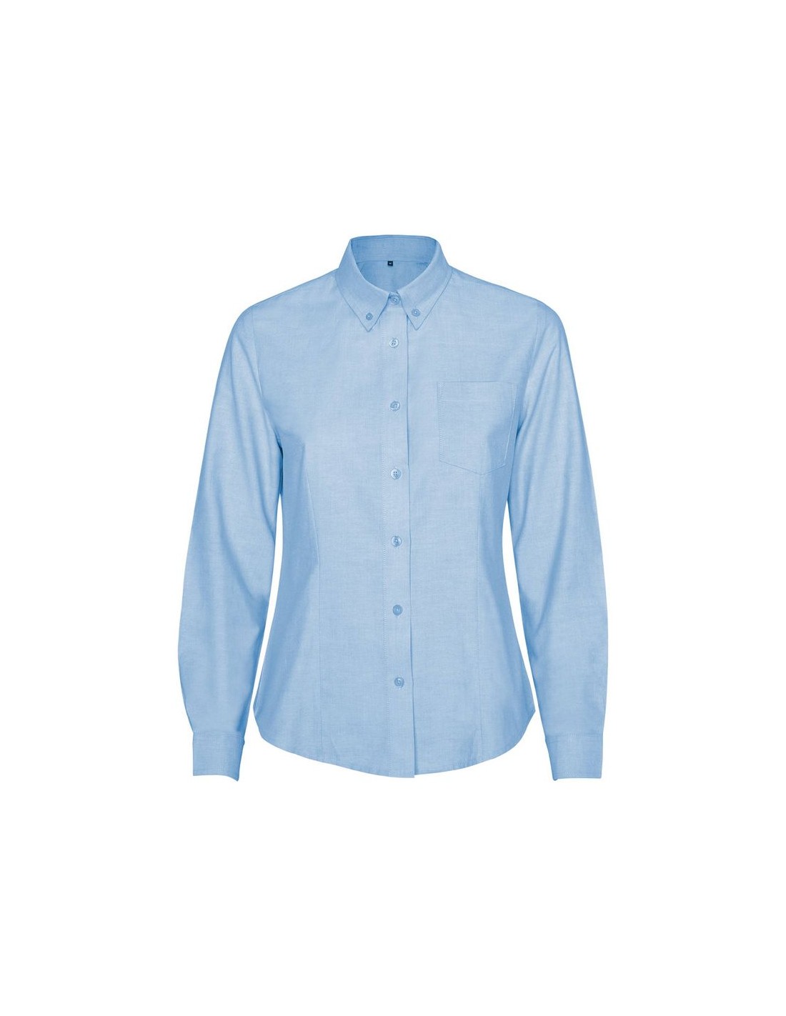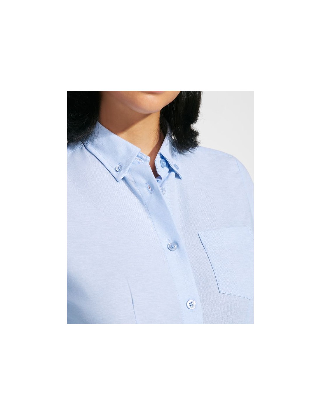 Camicia donna con tasca sul petto a sinistra, pattina con bottoni, colletto con bottoni, polsini con due fascette, piega sulla schiena, cuciture sul petto e forma sfiancata.