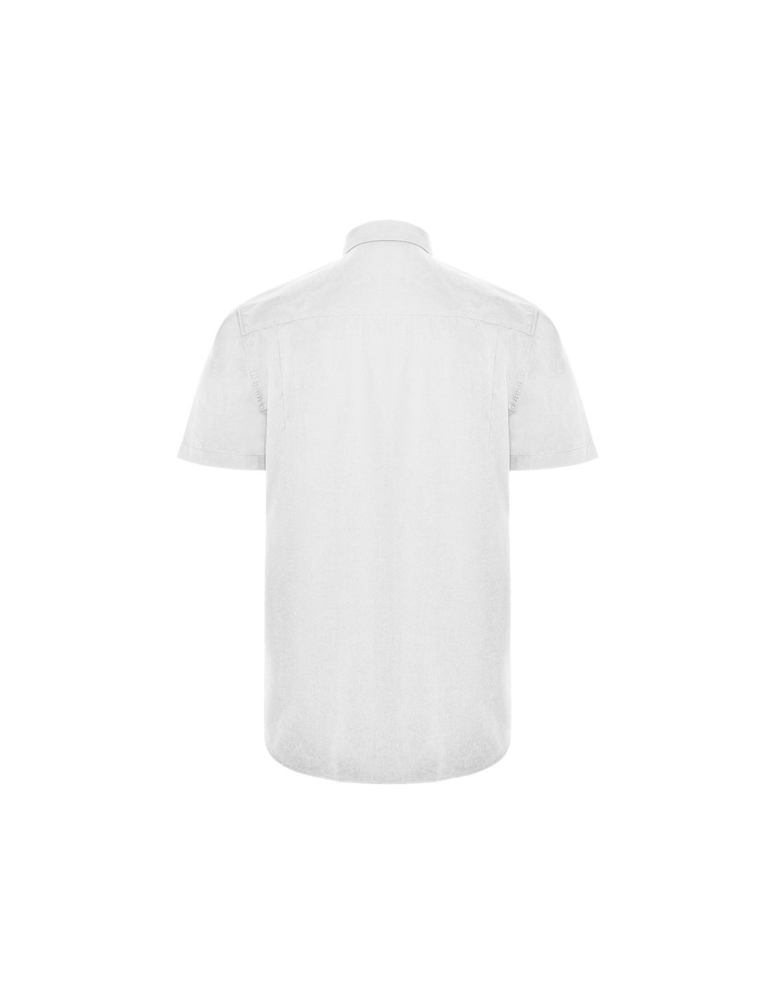 Camicia manica corta e colletto classico botton down, taschino frontale lato sinistro, abbottonatura con 7 bottoni in tinta e bordo inferiore arrotondato, facile da curare.