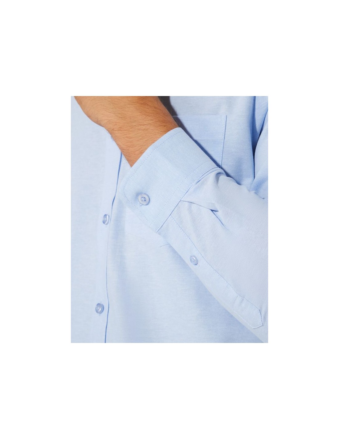 Camicia da uomo con taschino sul petto a sinistra, collo tipo smoking con bottoni, polsino con due fascette, piega sulla schiena.