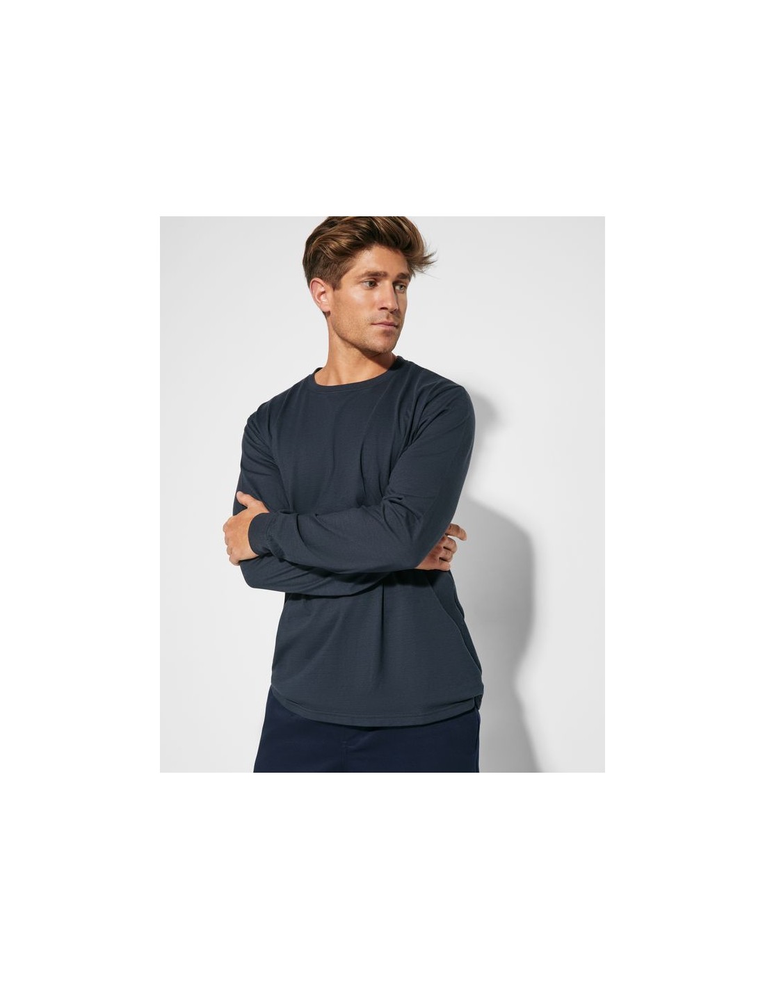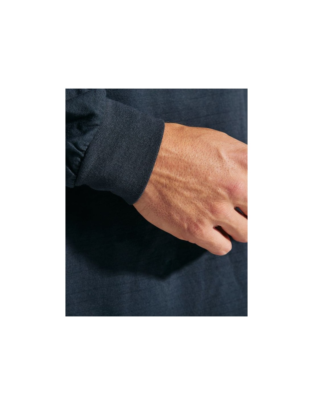Maglia a maniche lunghe in tessuto ignifugo, girocollo con cuciture di copertura, collo e polsini a costine 1x1, cuciture laterali.