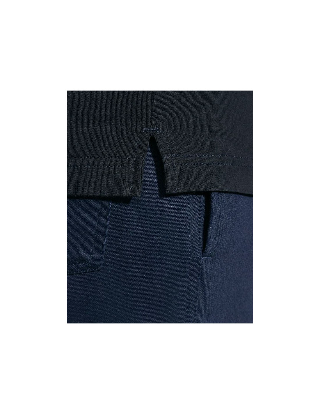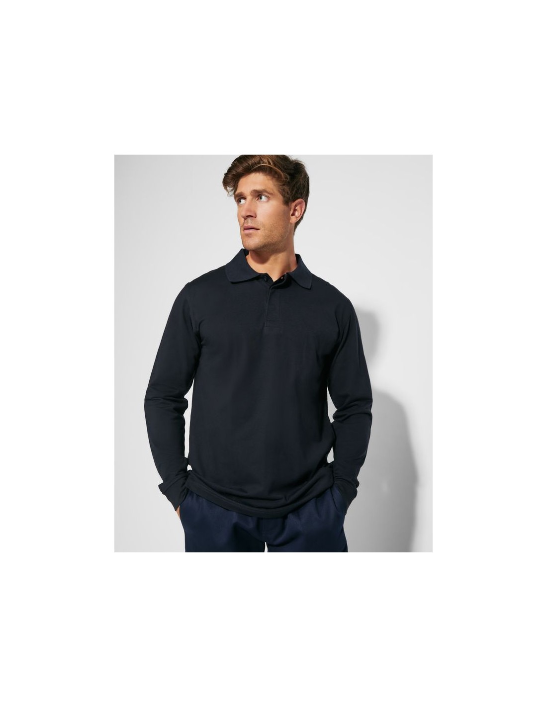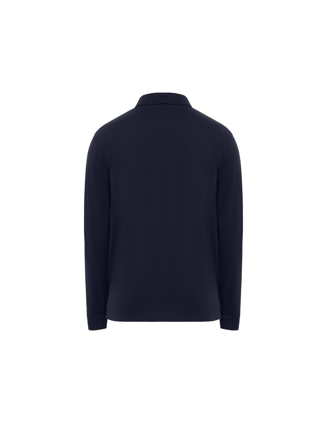 Polo a maniche lunghe in tessuto ignifugo, collo e polsini a costine 1x1, 3 bottoni nascosti, cuciture rinforzate e coperte nel collo, spacchetti laterali al fondo.