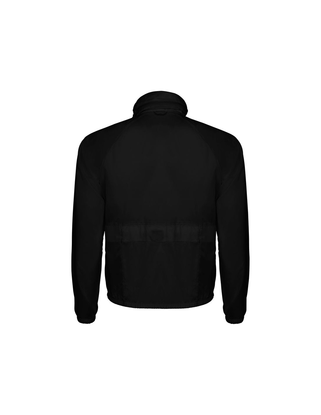 Giacca a vento in tessuto tecnico, collo con taschino per il cappuccio, tessuto traspirante sotto la manica, maniche corte raglan, doppia tasca davanti con cerniera, apertura con zip davanti, tasca posteriore per ripiegare la giacca come una borsa, giromanica a maniche con elastici, fettuccia nella parte posteriore del collo per appendere l'indumento, cappuccio con regolatori di plastica e cordoncino elastico, tessuto traspirante all'interno del collo, tessuto traspirante all'interno della tasca.