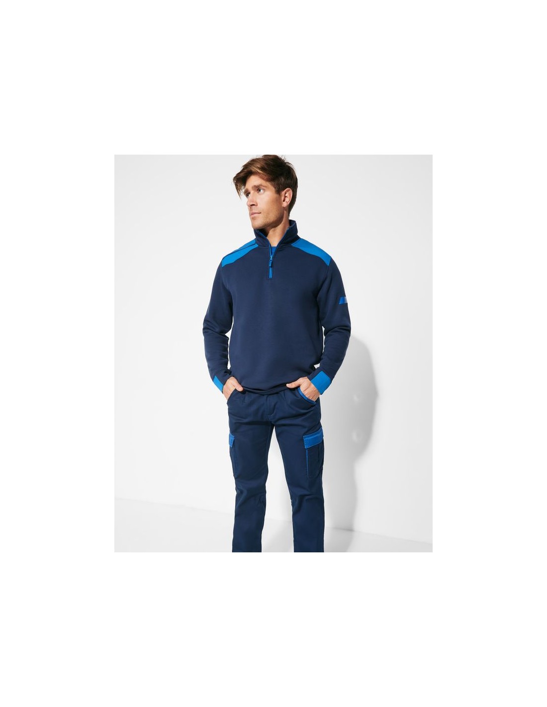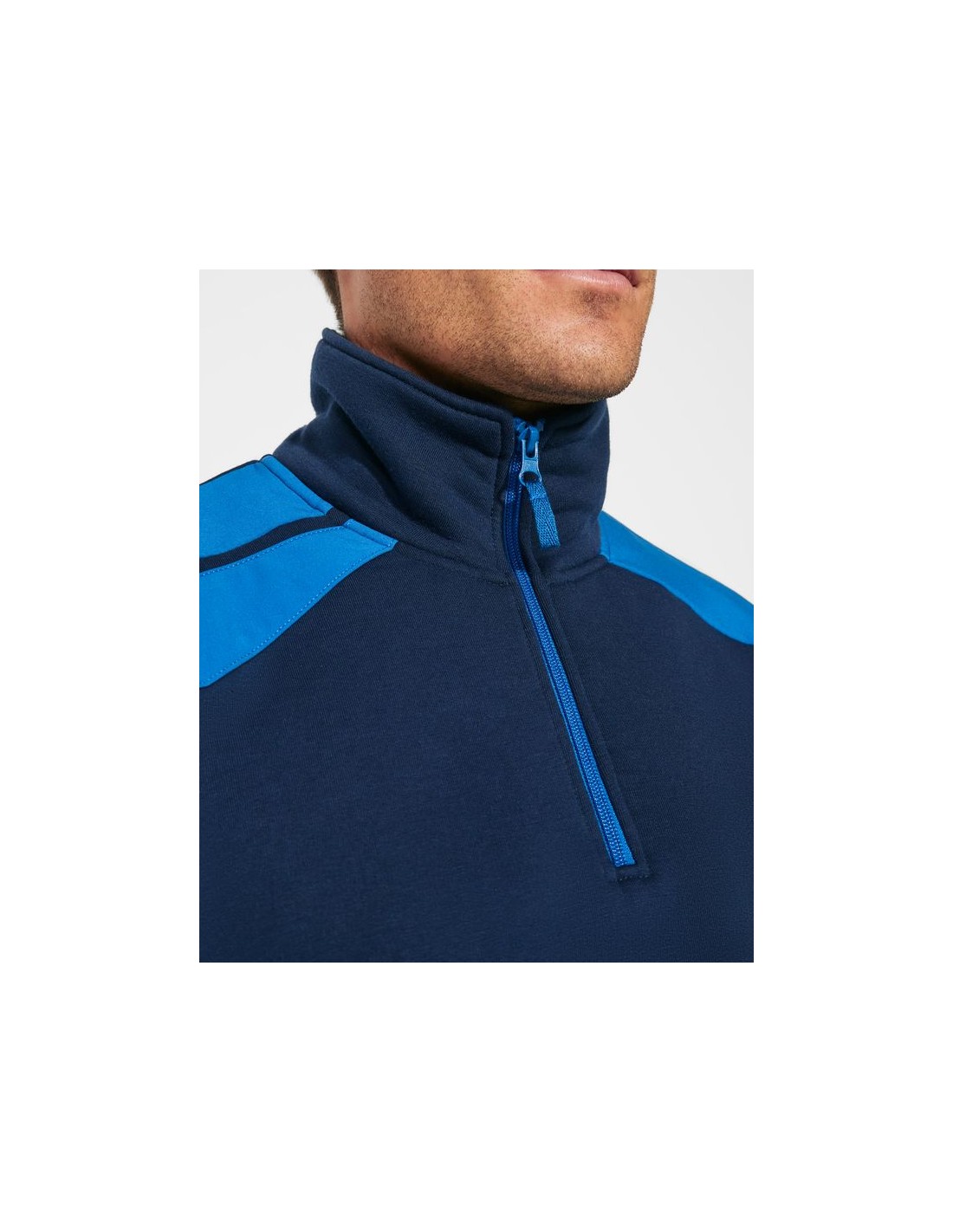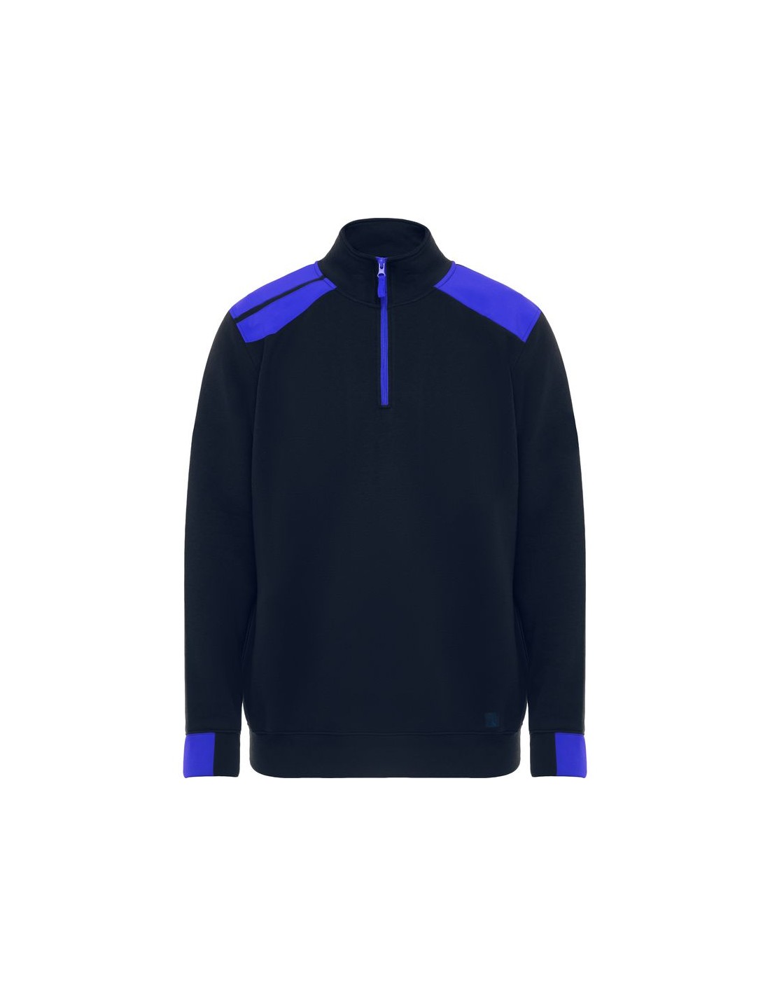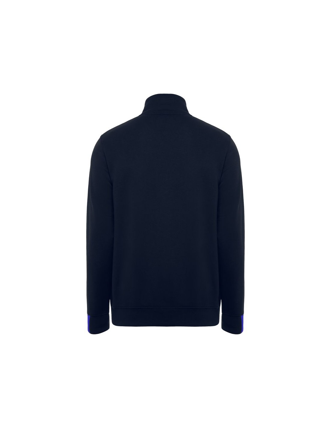 Felpa mezza zip e collo alto in colori misti, mezzo polsino e orlo in maglia a coste 1x1, copri cuciture rinforzate all'interno del collo, spalle e dettagli a contrasto.