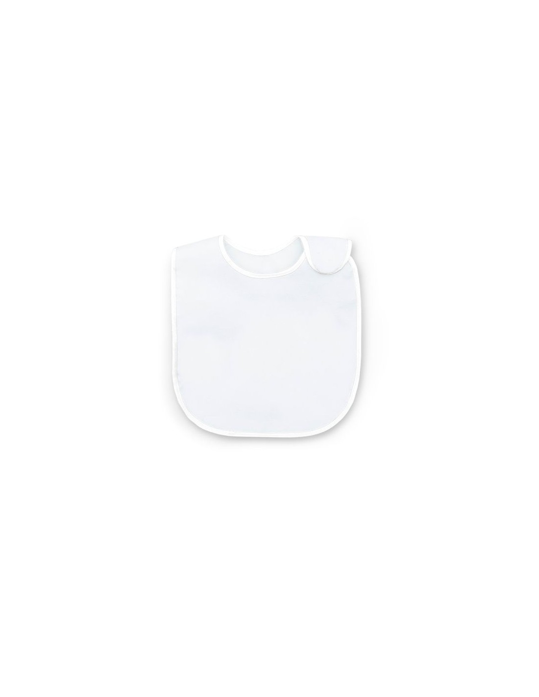 Bavaglio orlato, tessuto di cotone nella parte anteriore e di palstica nella parte posteriore per evitare il trasferimento dei liquidi, chiusura laterale de velcro morbido.