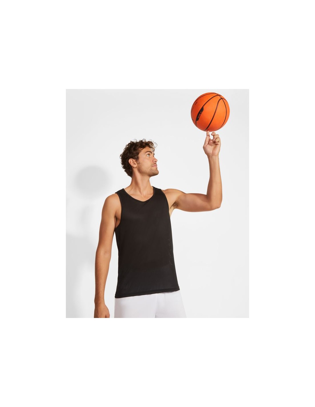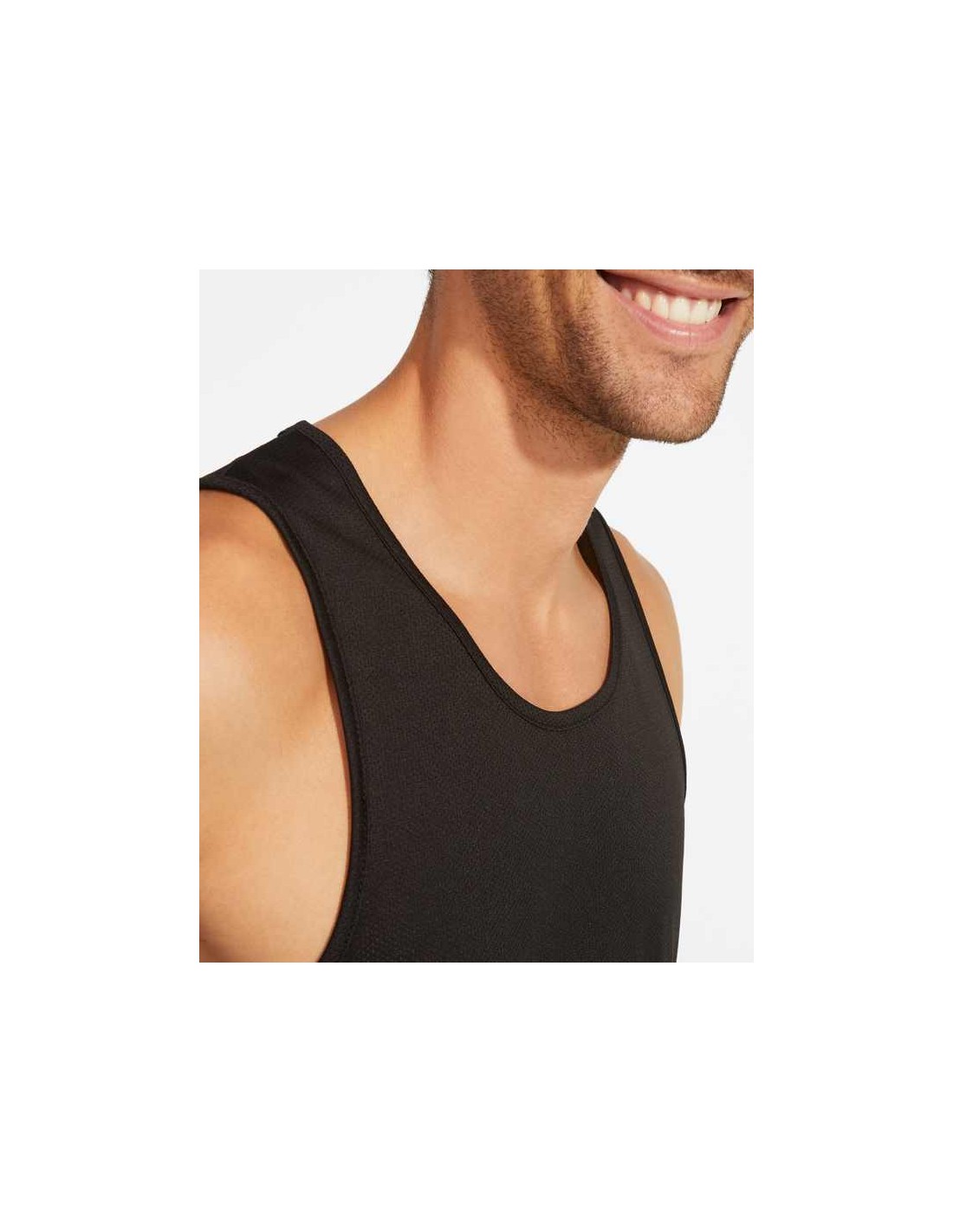 Canotta con spalline larghe in tessuto traforato, girocollo e giromanica ribattuti con lo stesso tessuto, graspirante, leggero e confortevole.