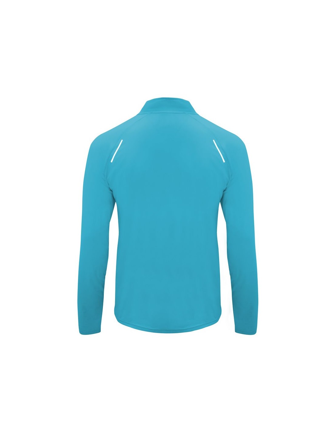 Maglia tecnica manica lunga raglan per uomo, interno felpato, copri cuciture rinforzate a contrasto all'interno del collo, mezza cerniera invertita in tinta con dettagli riflettenti, polsini con apertura per il pollice, la parte posteriore è leggermente più lunga della parte anteriore, dettagli riflettenti sulle spalle.