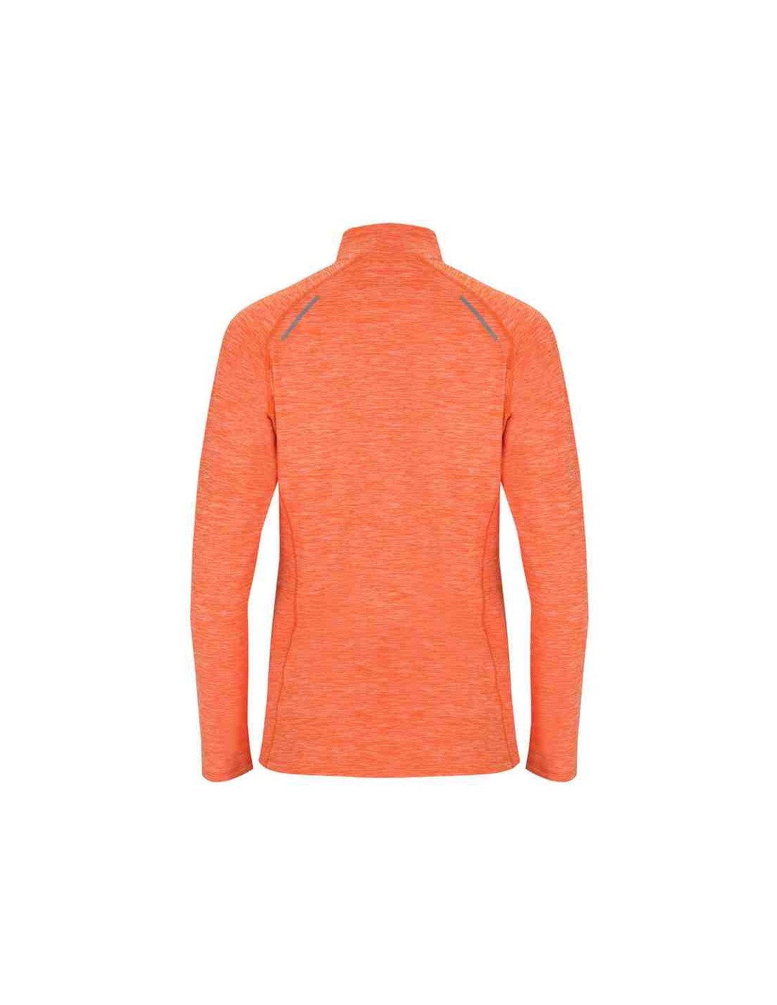 Maglia tecnica manica lunga raglan per donna, interno felpato, copri cuciture rinforzate a contrasto all'interno del collo, mezza cerniera invertita in tinta con dettagli riflettenti, polsini con apertura per il pollice, la parte posteriore è leggermente più lunga della parte anteriore, dettagli riflettenti sulle spalle.