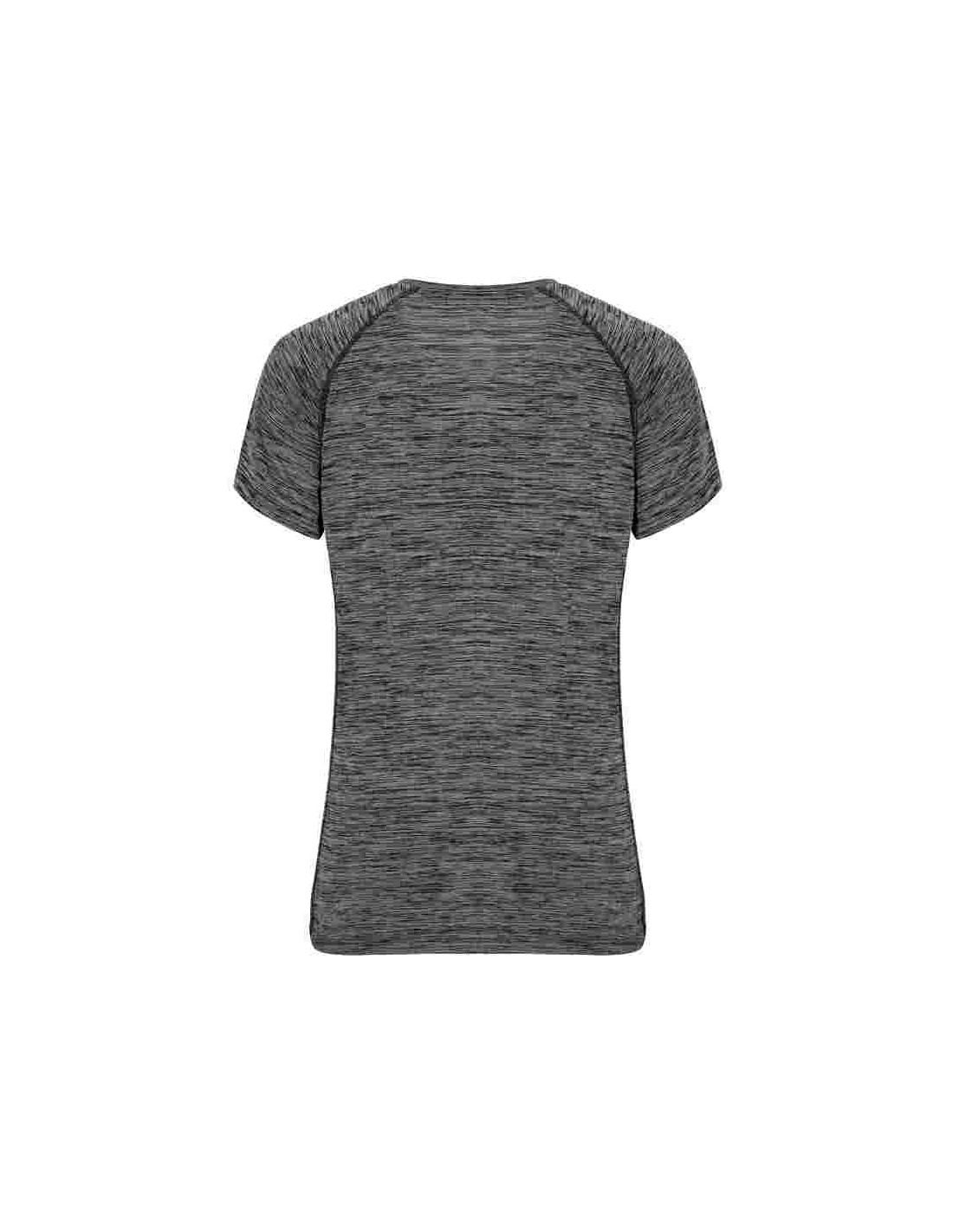 T-shirt tecnica da donna in poliestere con manica ranglan, girocollo, tessuto comodo e facilmente adattabile al corpo.