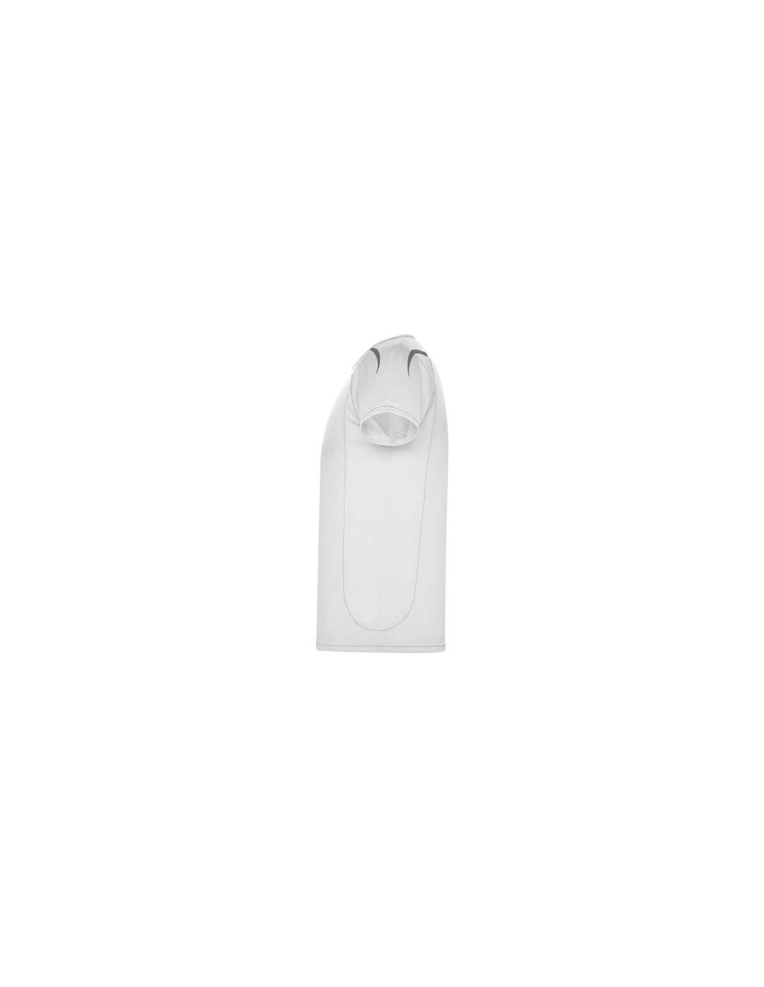 T-shirt tecnica manica corta raglan con doppio tessuto, cuciture a contrasto su fondo manica, girovita, collo e fianchi, collo in contrasto con lo stesso tessuto, tessuto traspirante, di facile lavaggio e asciugatura rapida, dettagli riflettenti, tranne nei colori nero e royal, in queste tonalità il dettaglio è in giallo non riflettente.