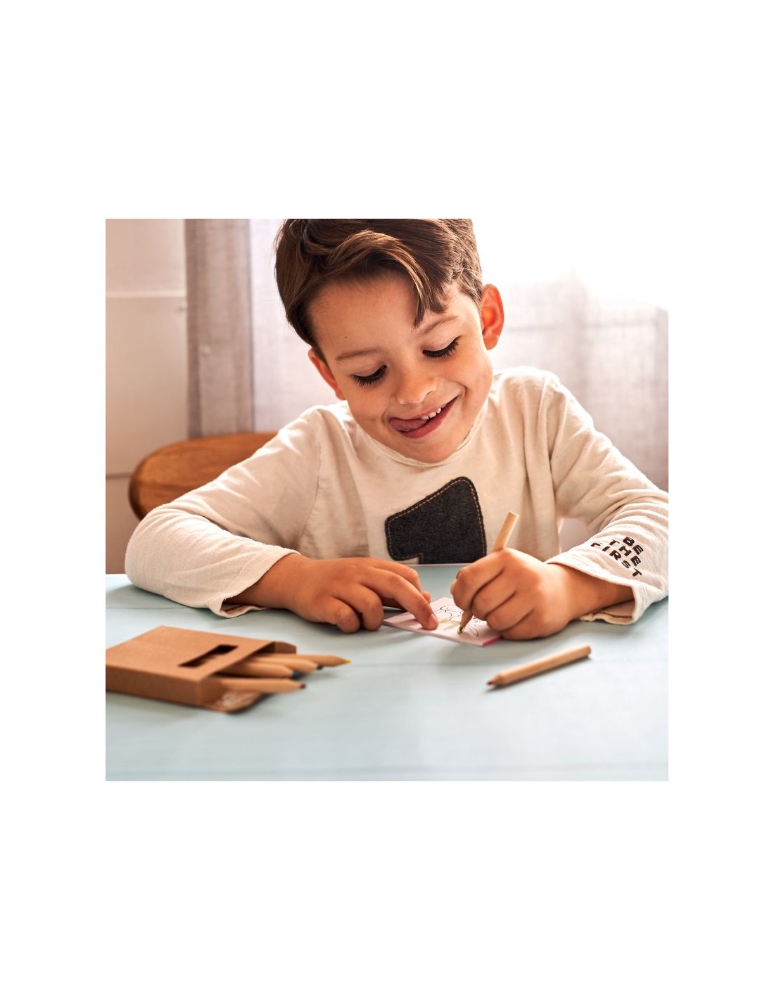 Set per bambini da colorare, include blocco per disegni, 6 matite colorate e temperamatite, comfezione in scatola di cartone riciclato.
