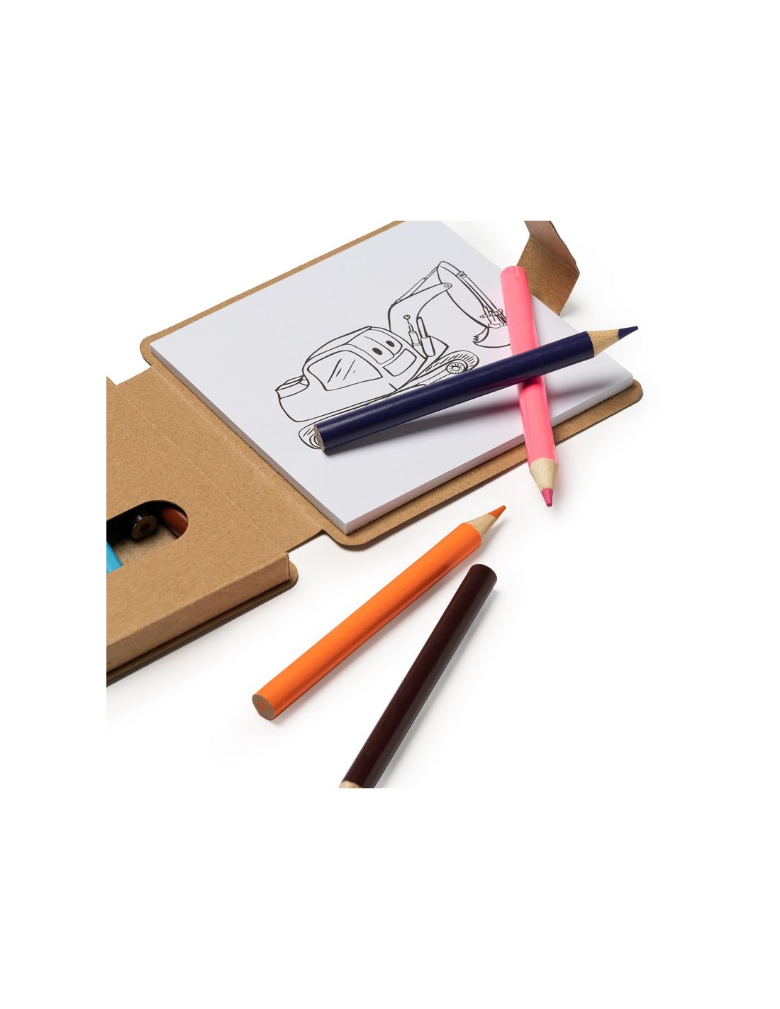 Divertente set per bambini per colorare in qualsiasi luogo, include un blocco di vari disegni e 12 matite di colori.