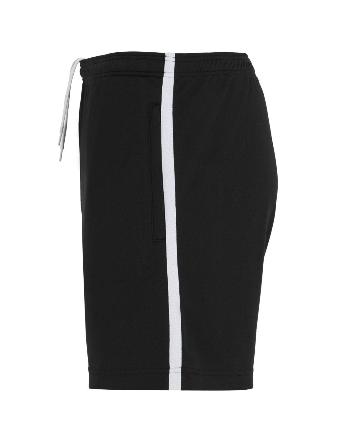 Pantaloncini multisport, tasche laterali con cerniera, girovita elastico con cordoncini interni incrociati in contrasto. Fascia laterale in contrasto.