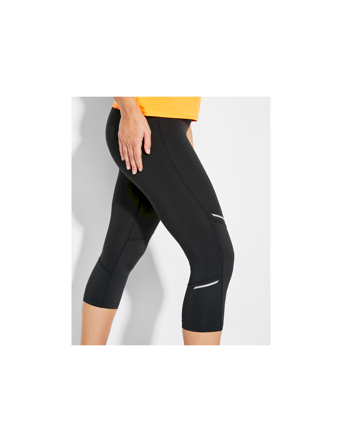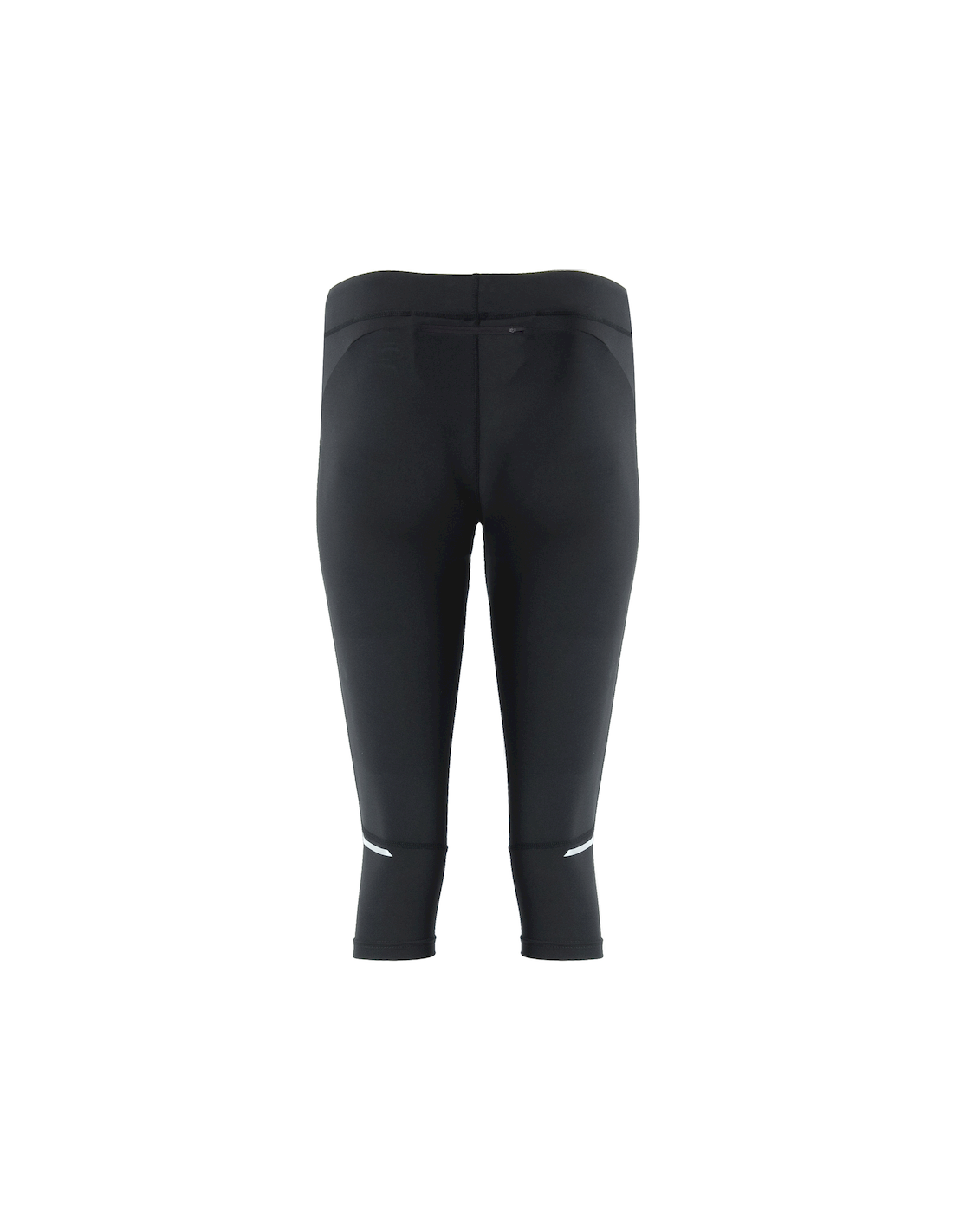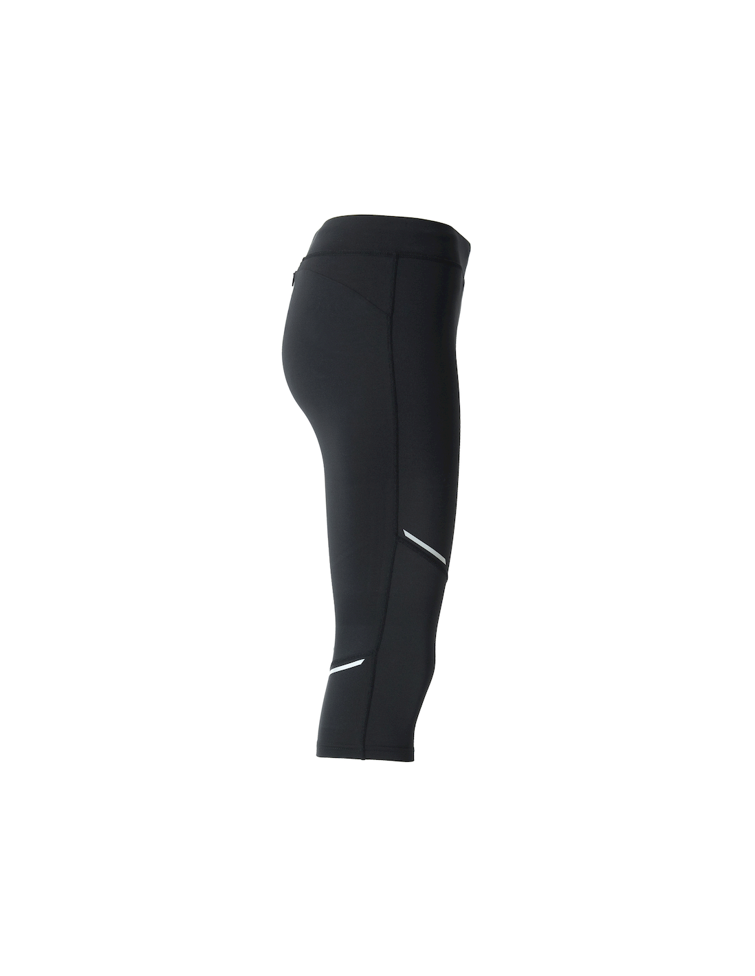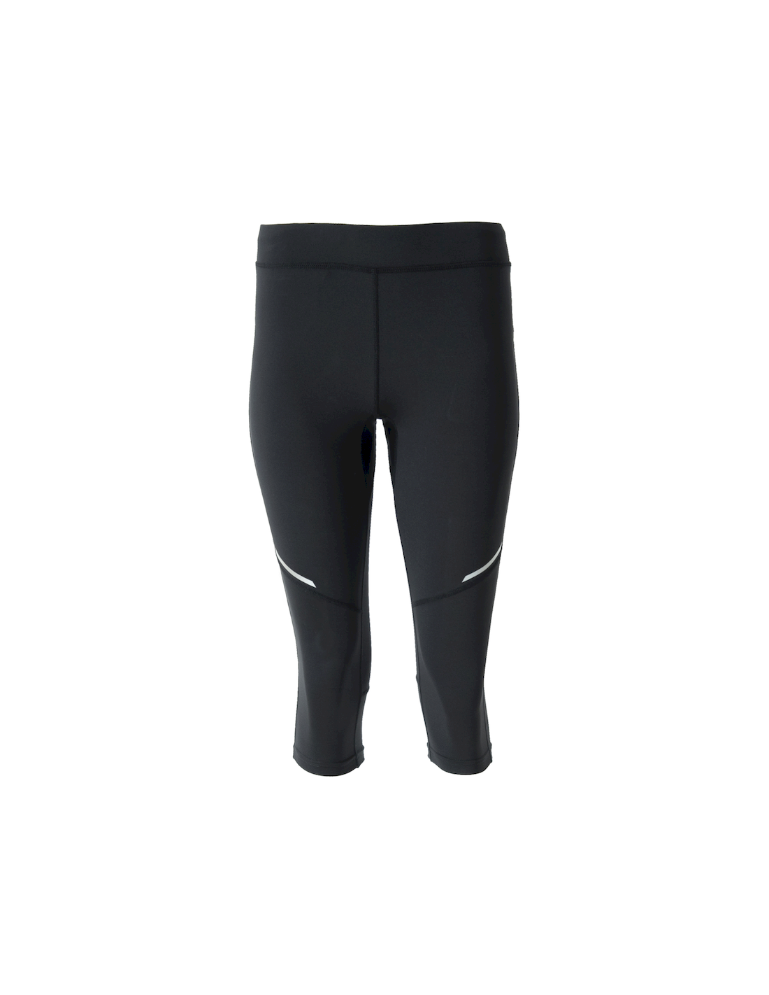 Leggings sportivo da donna a metà polpaccio, girovita elastico e cordoncino interno incrociato per una facile regolazione, dettagli riflettenti, tasca posteriore esterna con cerniera.