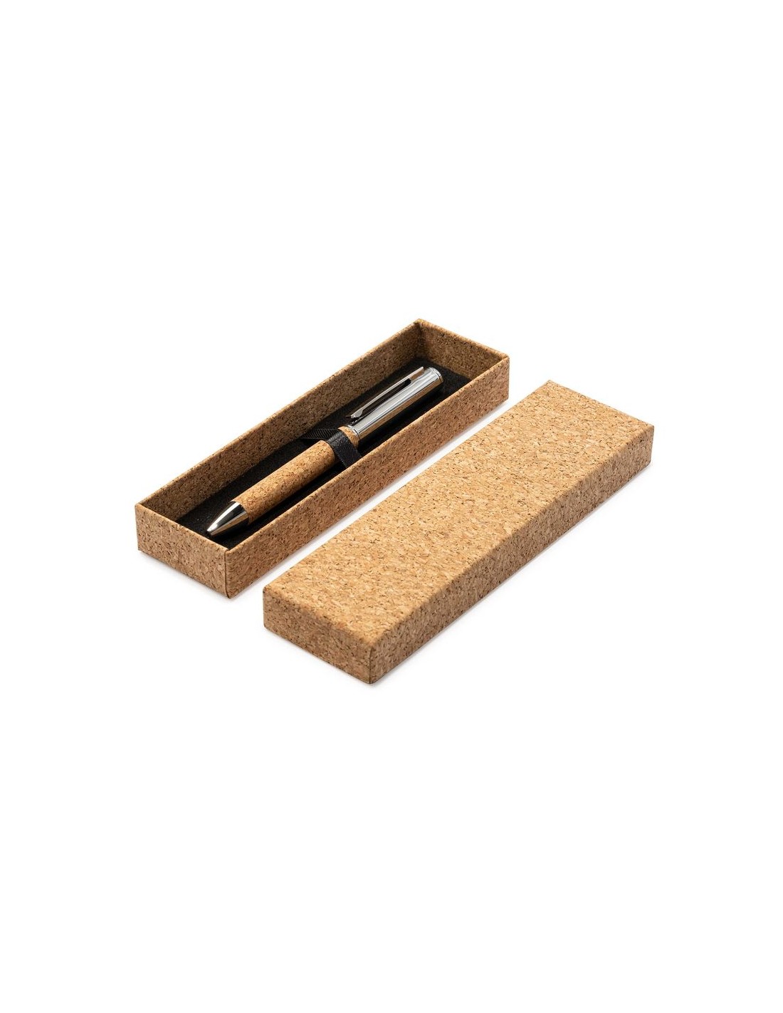 Composition: Penna a sfera: sughero PU e metallo, astuccio: cartone con superficie in sughero ed interno rivestito in velluto nero.
