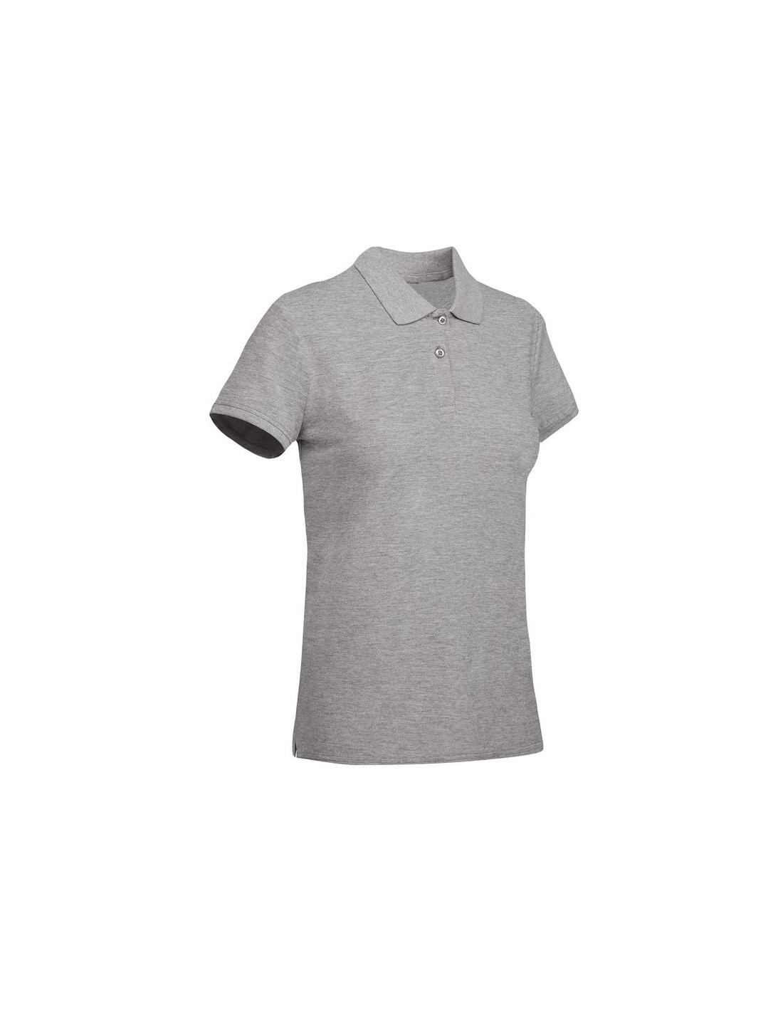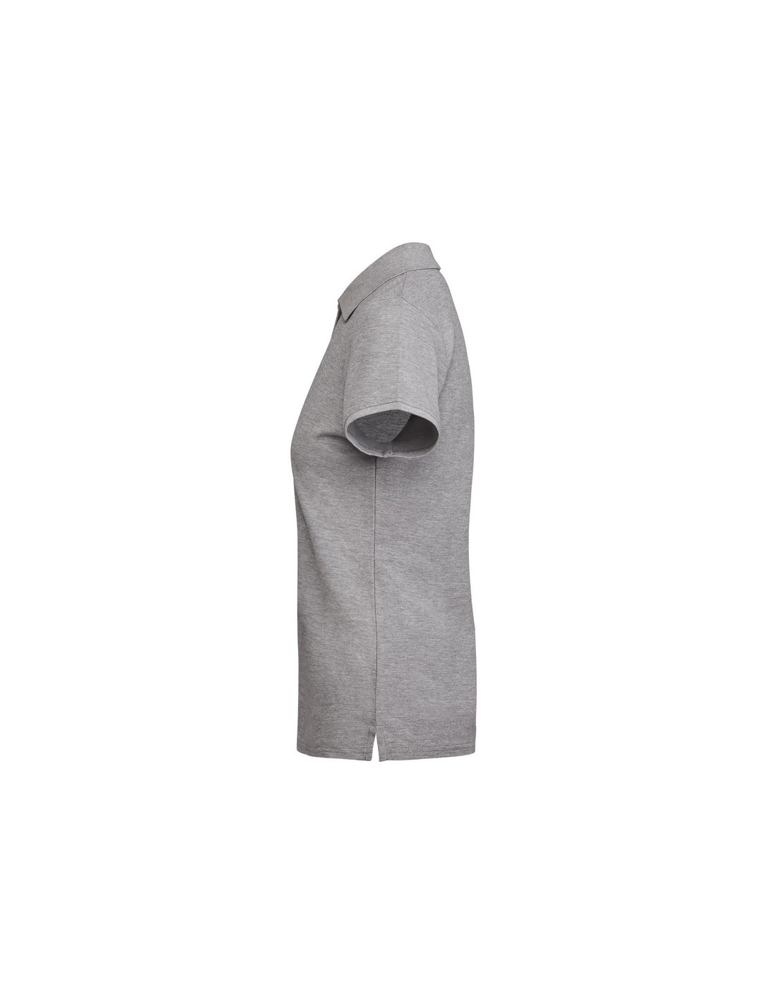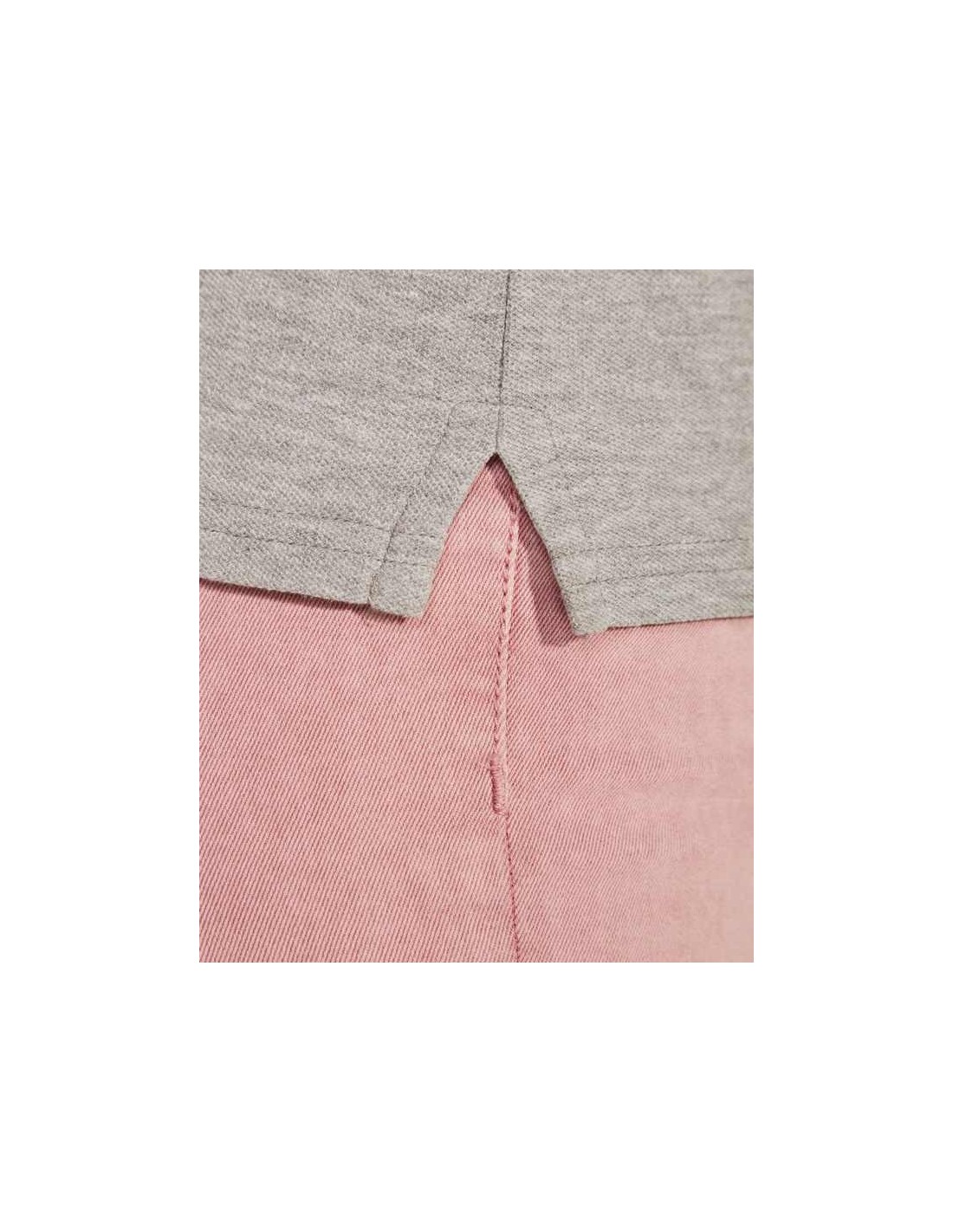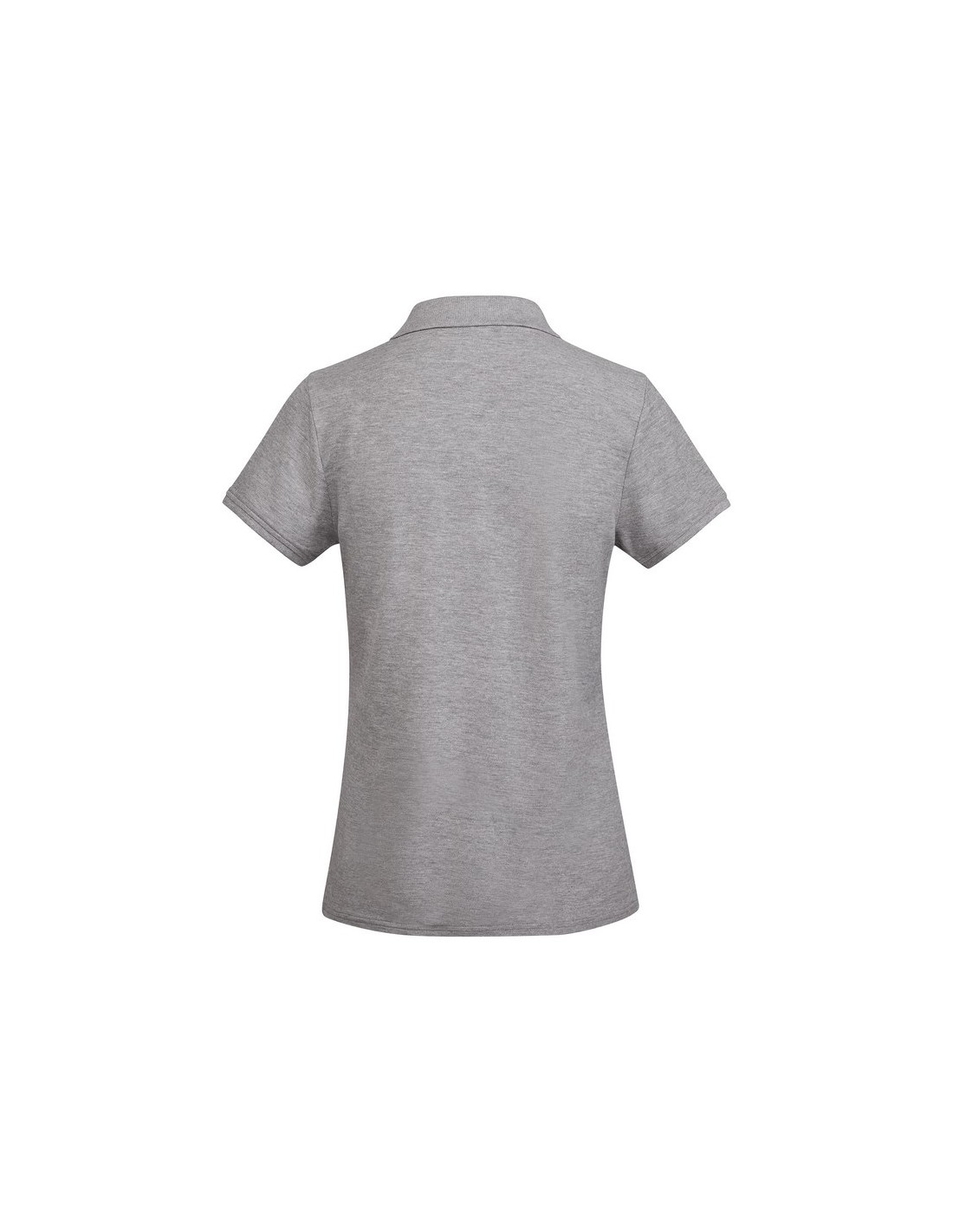 Polo da donna aderente a maniche corte in cotone organico certificato OCS, colletto e polsini delle maniche in costina 1x1, chiusura a due bottoni, copri cuciture rinforzate sul colletto, spacchi laterali sull'orlo.