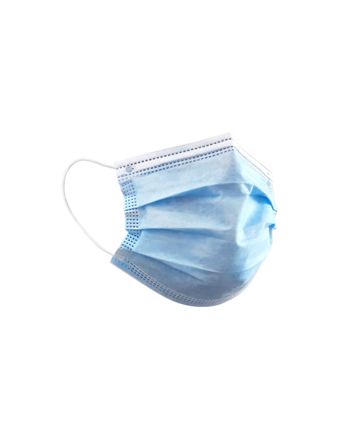 Maschera chirurgica TIPO IIR per uso medico, triplo strato con finitura termosaldata, supporto elastico e nasello.