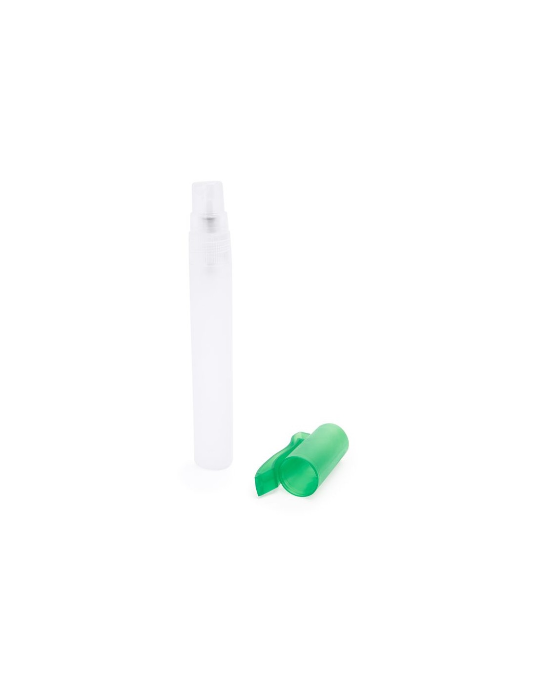 Gel igienizzante per le mani, con il 70% di alcol, pratico contenitore da 10 ml. traslucido, a forma di penna ed erogatore spray, cappuccio con clip disponibile in vari colori.