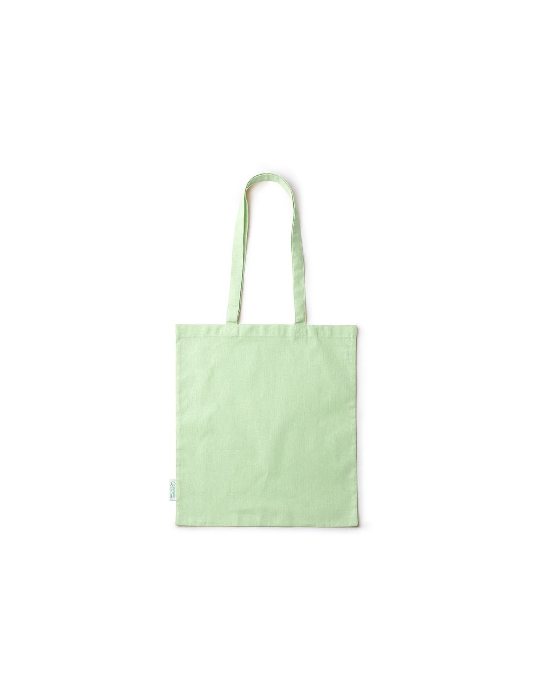 Borsa shopper in 100% cotone biologico (140 g/m²), con manici rinforzati lunghi 70 cm.