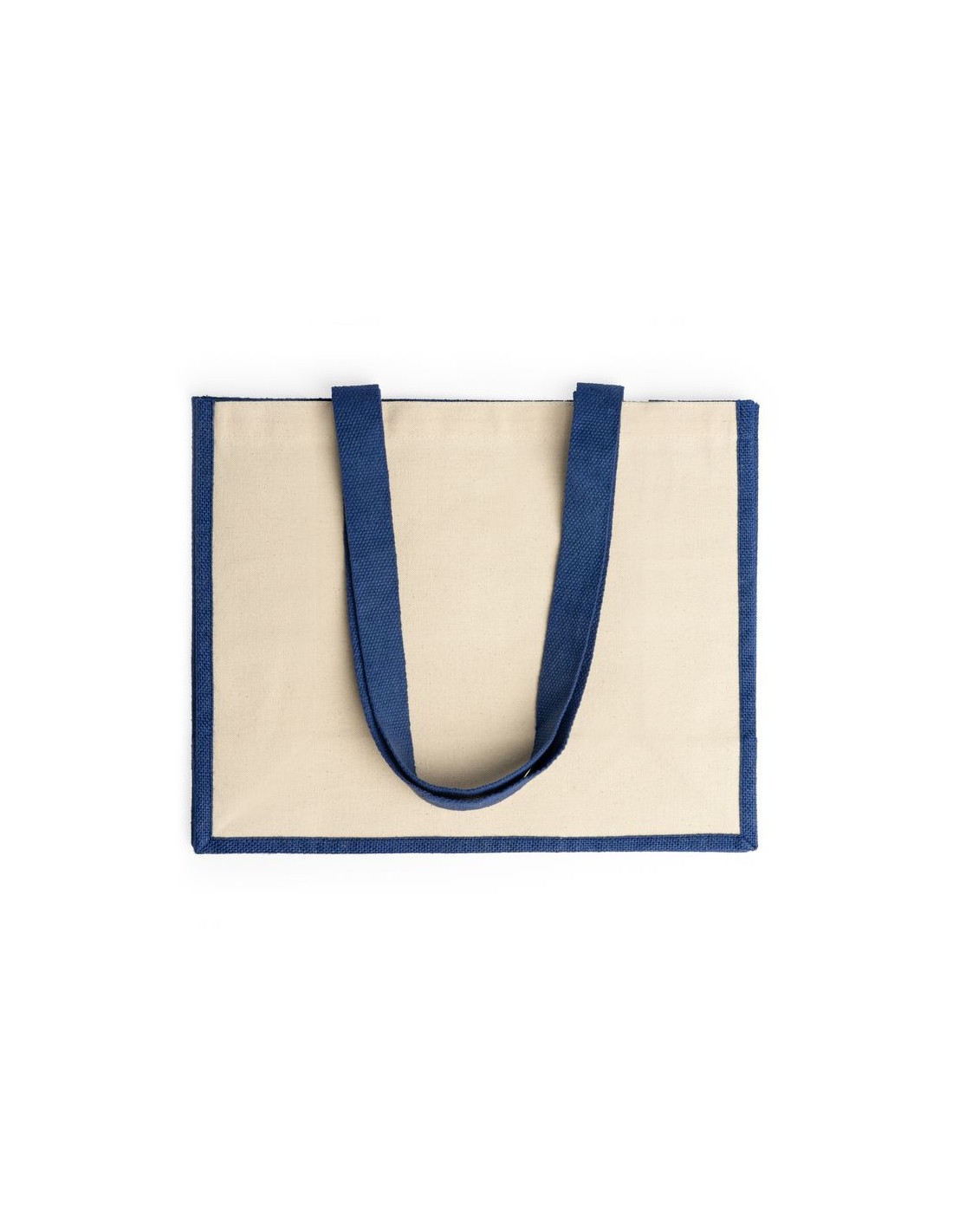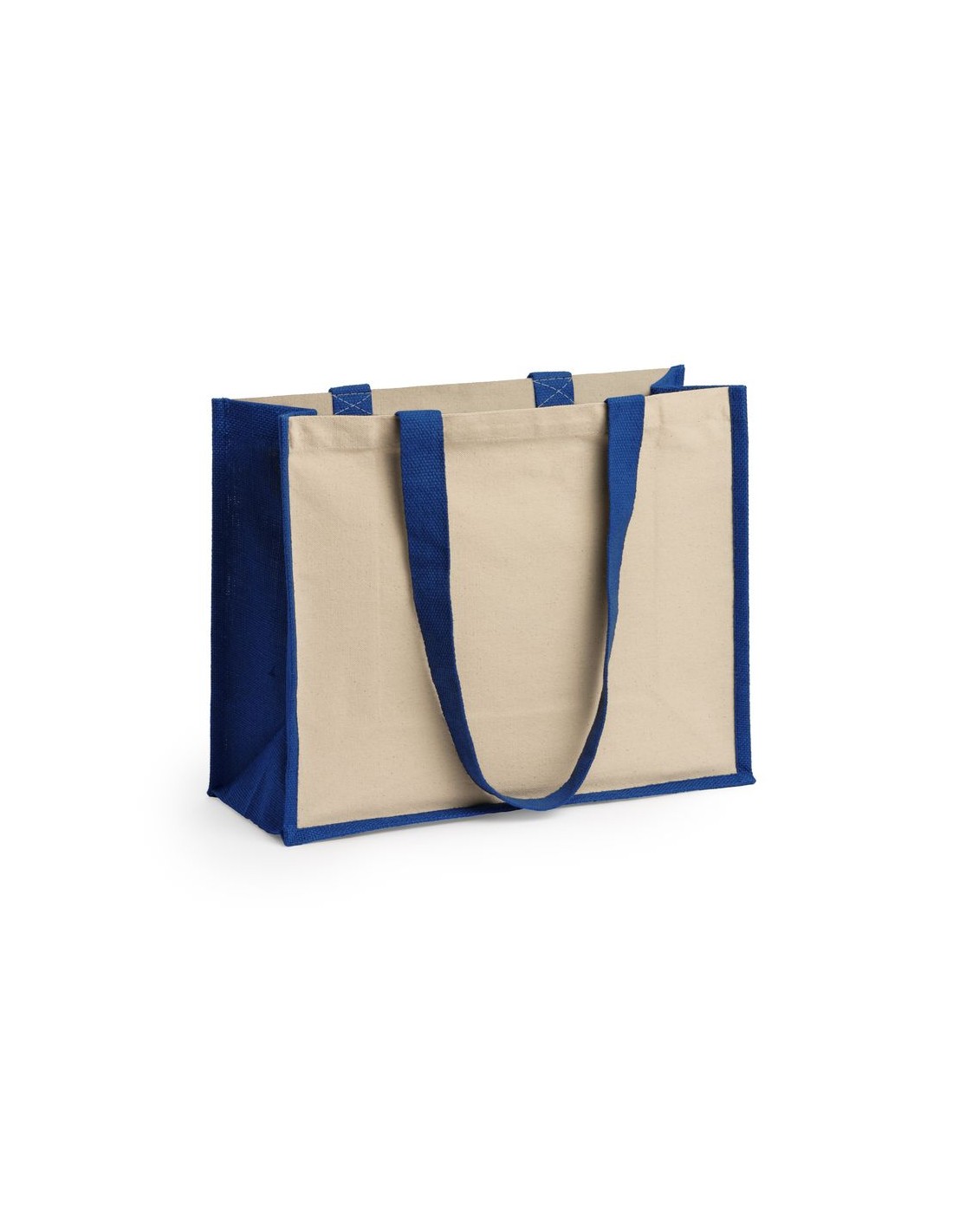 Borsa in juta laminata con un lato in cotone ideale per la stampa e manici lunghi.